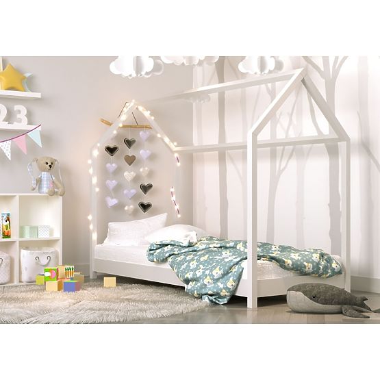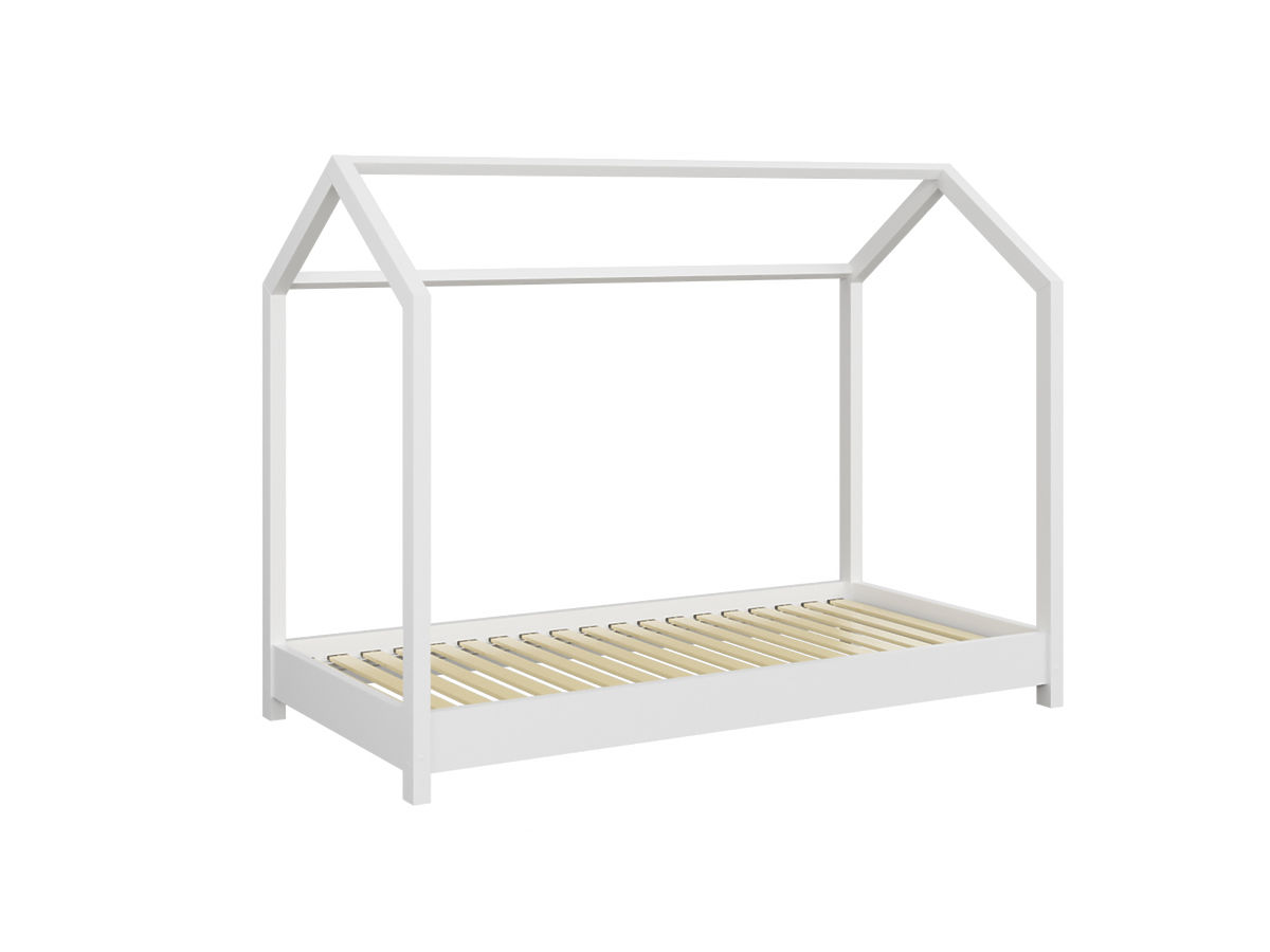Il letto a forma di casetta Bella è realizzato in legno massiccio di pino con un design semplice e include una rete a doghe. La struttura ariosa di colore bianco soddisfa perfettamente le caratteristiche di un letto in stile scandinavo.