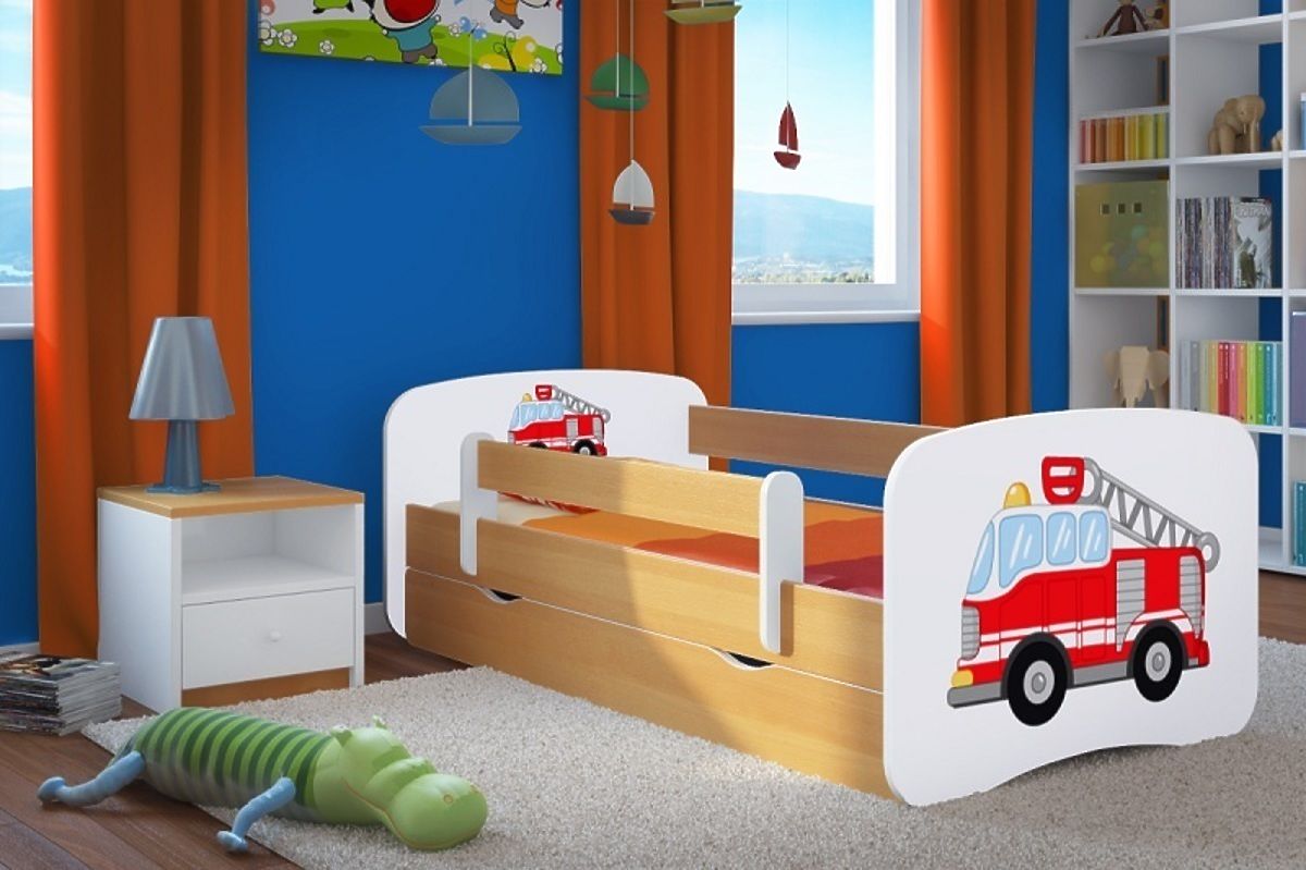 Dětská postel Ourbaby s hasičským autem a bukovým odstínem bočnic! Ideální pro malé obdivovatele has .. altro