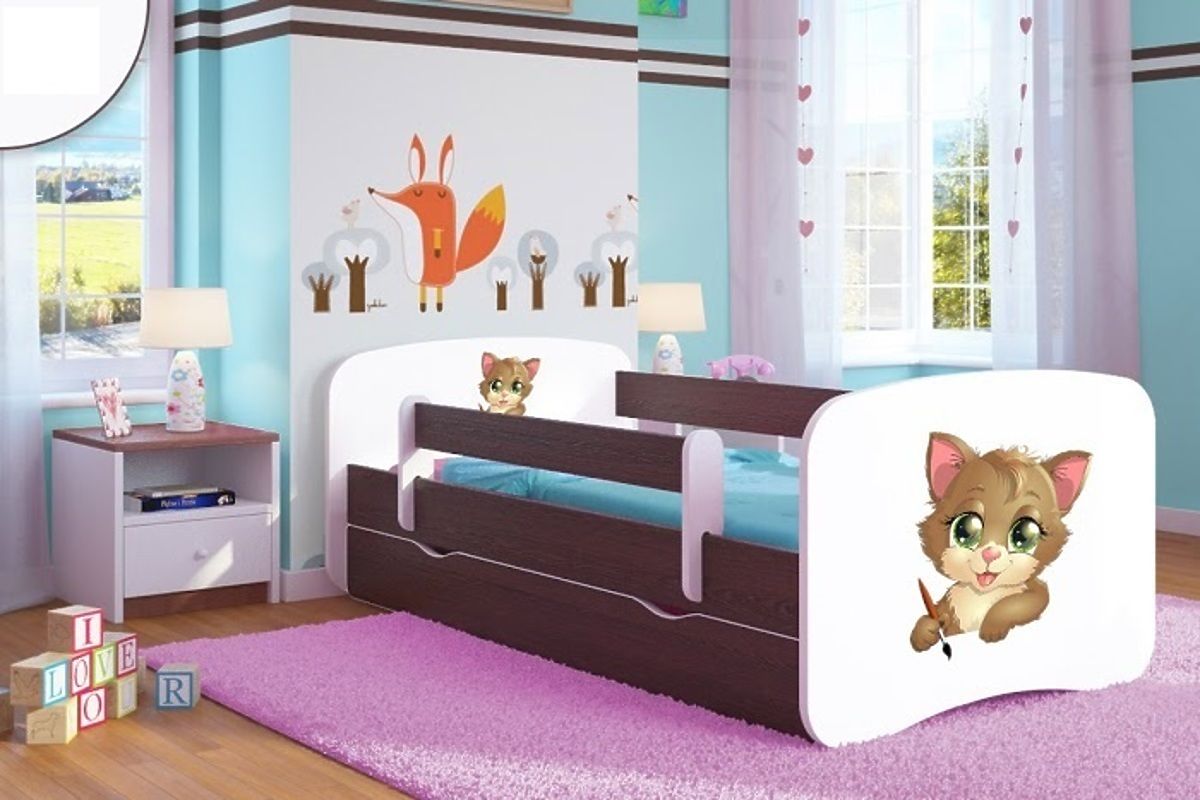 Moderní postel kvalitního zpracování s motivem roztomilých kočiček. Postel je vhodná do pokoje pro malé princezny.