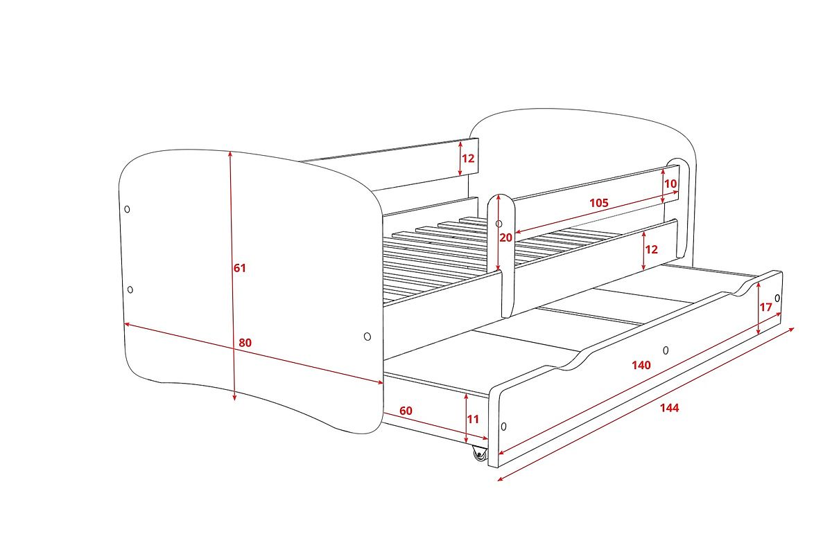 | Dimensioni del letto: | 140x70 cm |