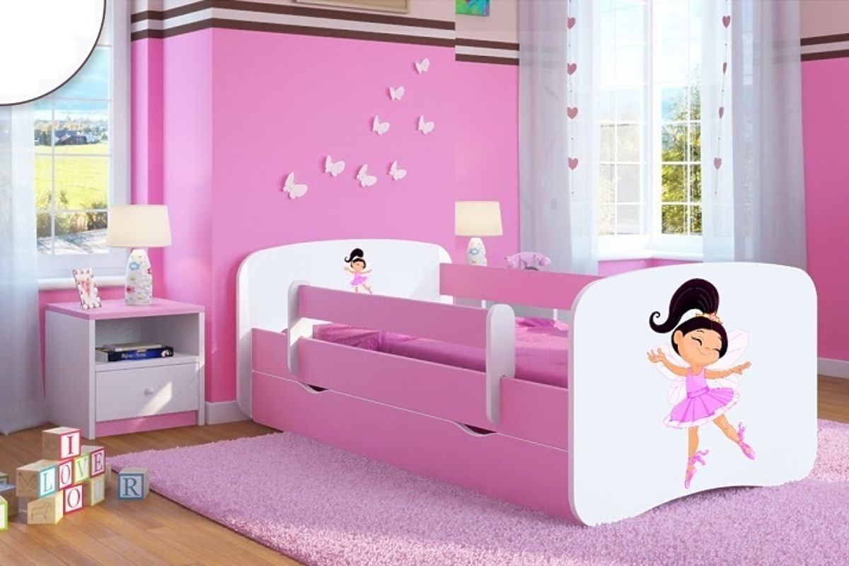 Krásná dětská postel v růžové barvě s motivem baletky rozzáří každý pokoj malé tanečnice.