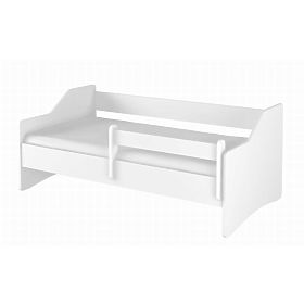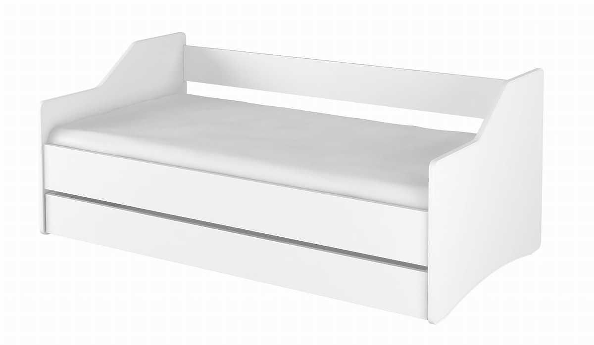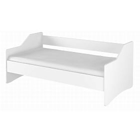 Letto per bambini LULU a forma di divano in colore bianco. Questo modello speciale di letto è conosciuto come letto con schienale. Di notte, il letto serve come un classico letto, durante il giorno come un divano.