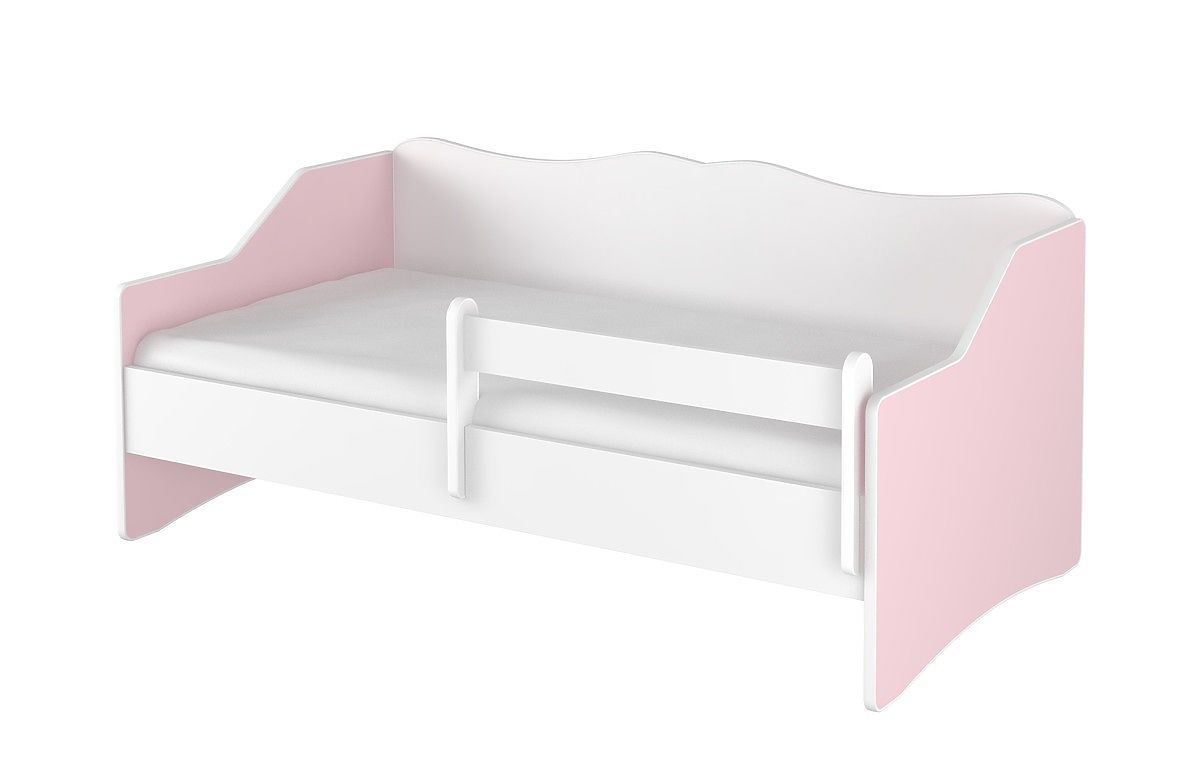 Letto per bambini LULU a forma di divano dal design rosa. Questo speciale modello di letto è noto come letto con schienale . Di notte il letto funge da letto classico, di giorno da divano.