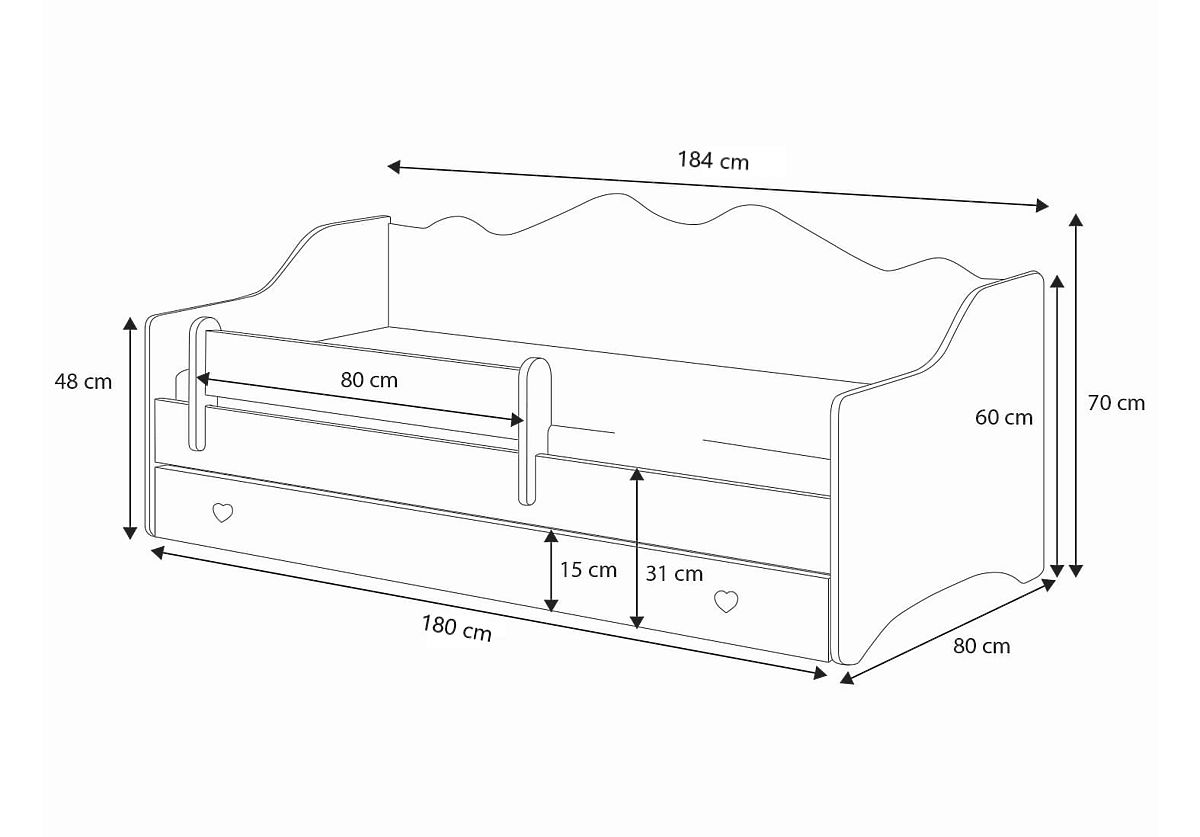 Letto per bambini EMMA 180x80 con cassetto e barriera mobile. .. altro