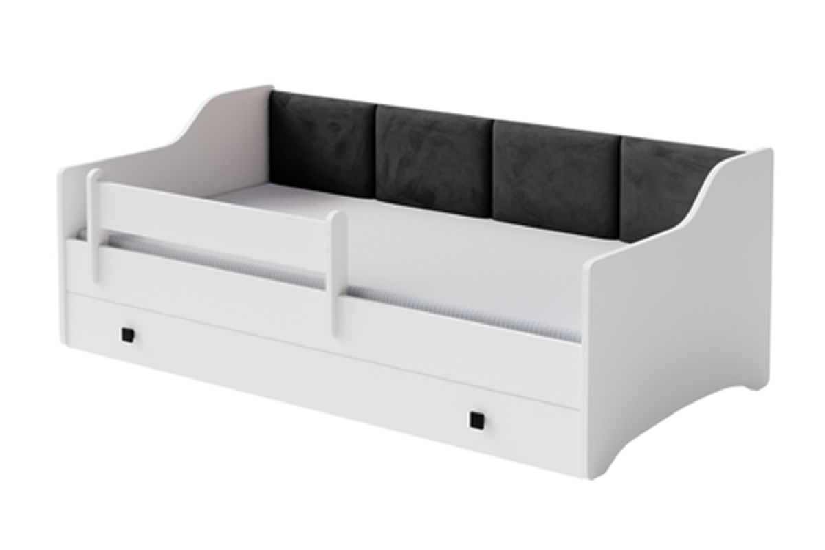 Banaby.it » Letti per bambini / Con protezione / Letto per bambini ERYK con cassetto e barriera 160x80 pannello nero