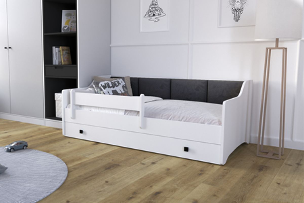 La multifunzionalità del modello Eryk lo rende un mobile che serve non solo per dormire, ma anche per riporre oggetti. Il letto è dotato di un pratico cassetto su ruote, ideale per riporre biancheria da letto, giocattoli o altri accessori per bambini. Grazie a questo spazio aggiuntivo, è facile mantenere l'ordine nella cameretta e risparmiare spazio. La morbida imbottitura e la barriera protettiva rimovibile assicurano un sonno confortevole e sicuro per il bambino, rendendo il letto una soluzione ideale per ogni cameretta. La solida costruzione e l'estetica garantiscono che il letto Eryk servirà per molti anni, offrendo comfort al bambino e tranquillità ai genitori.