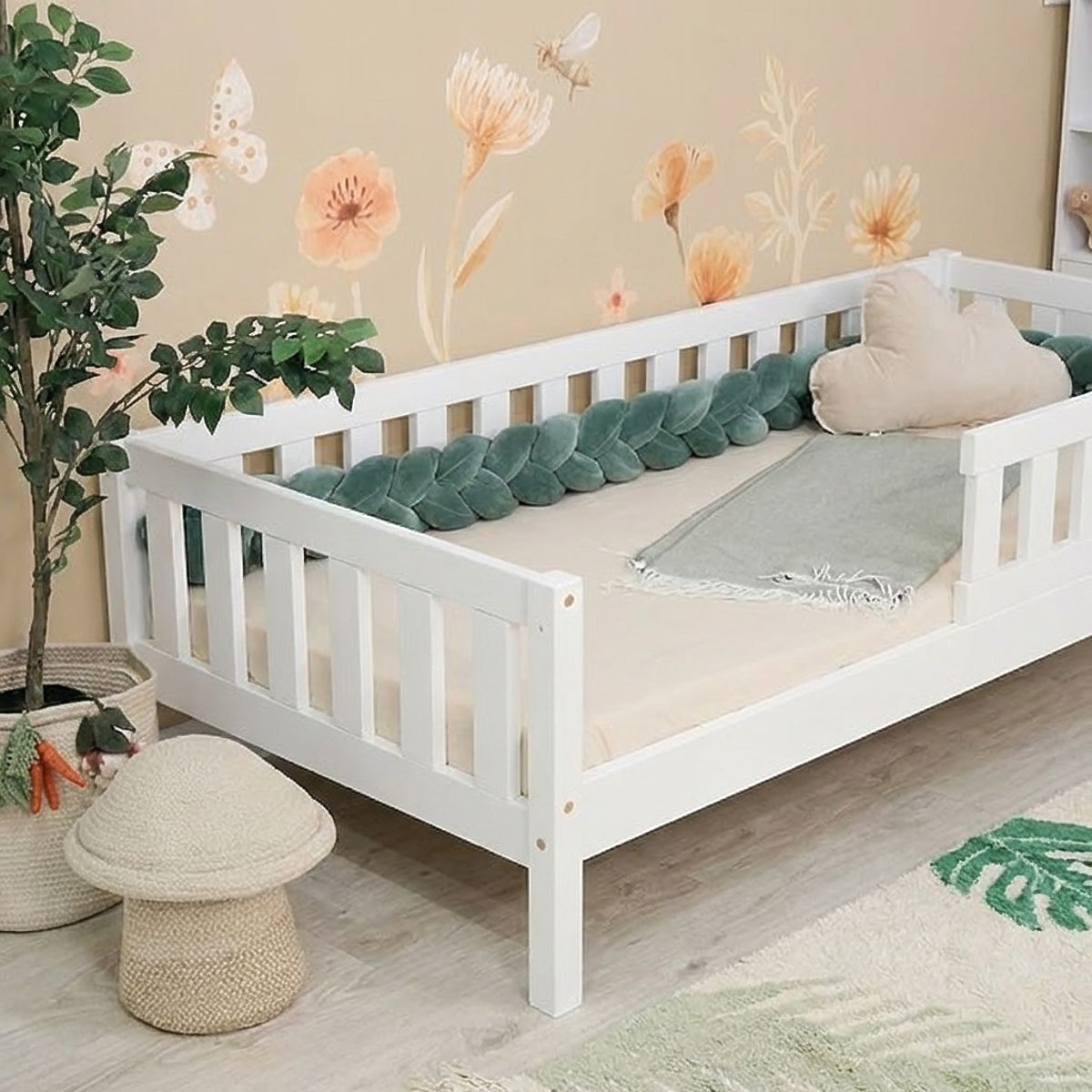 Il moderno letto per bambini Montessori Meadow in versione bianca è progettato secondo i principi Montessori, che promuovono l'autonomia e lo sviluppo naturale del bambino. Grazie alla struttura su piedini, il letto appare arioso e al contempo offre una pratica possibilità di utilizzo dello spazio di stoccaggio sotto il letto. Il letto fornisce un luogo sicuro e confortevole per dormire, riposare e giocare quotidianamente. La versione verde appare fresca e giocosa e ravviva splendidamente ogni cameretta.