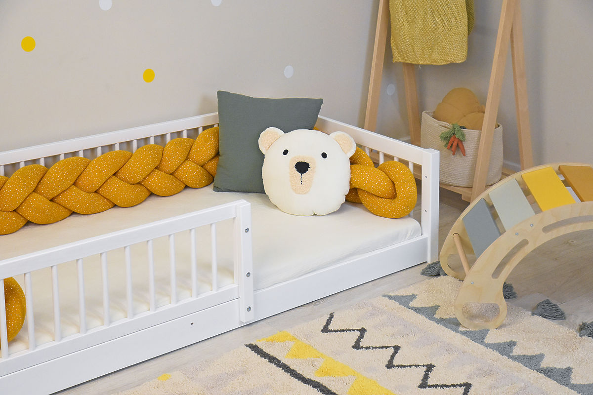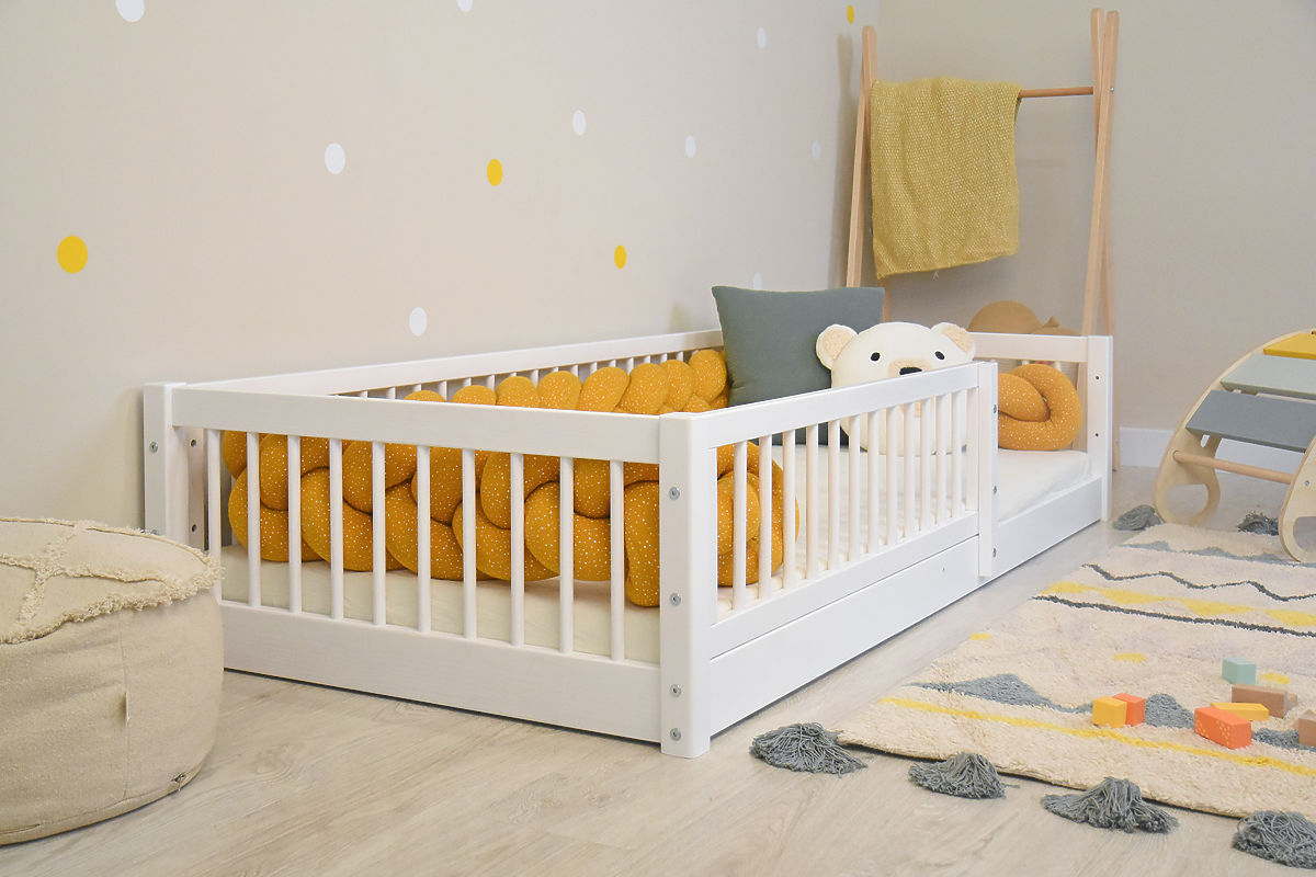 Il letto Montessori in elegante colore bianco è progettato tenendo conto delle esigenze dei bambini piccoli e dei principi della pedagogia Montessori. Grazie alla struttura bassa, consente al bambino di accedere autonomamente e in sicurezza al letto senza l'aiuto degli adulti, promuovendo così la sua indipendenza e autostima.