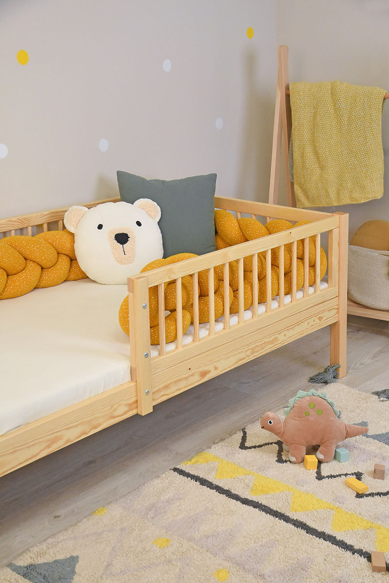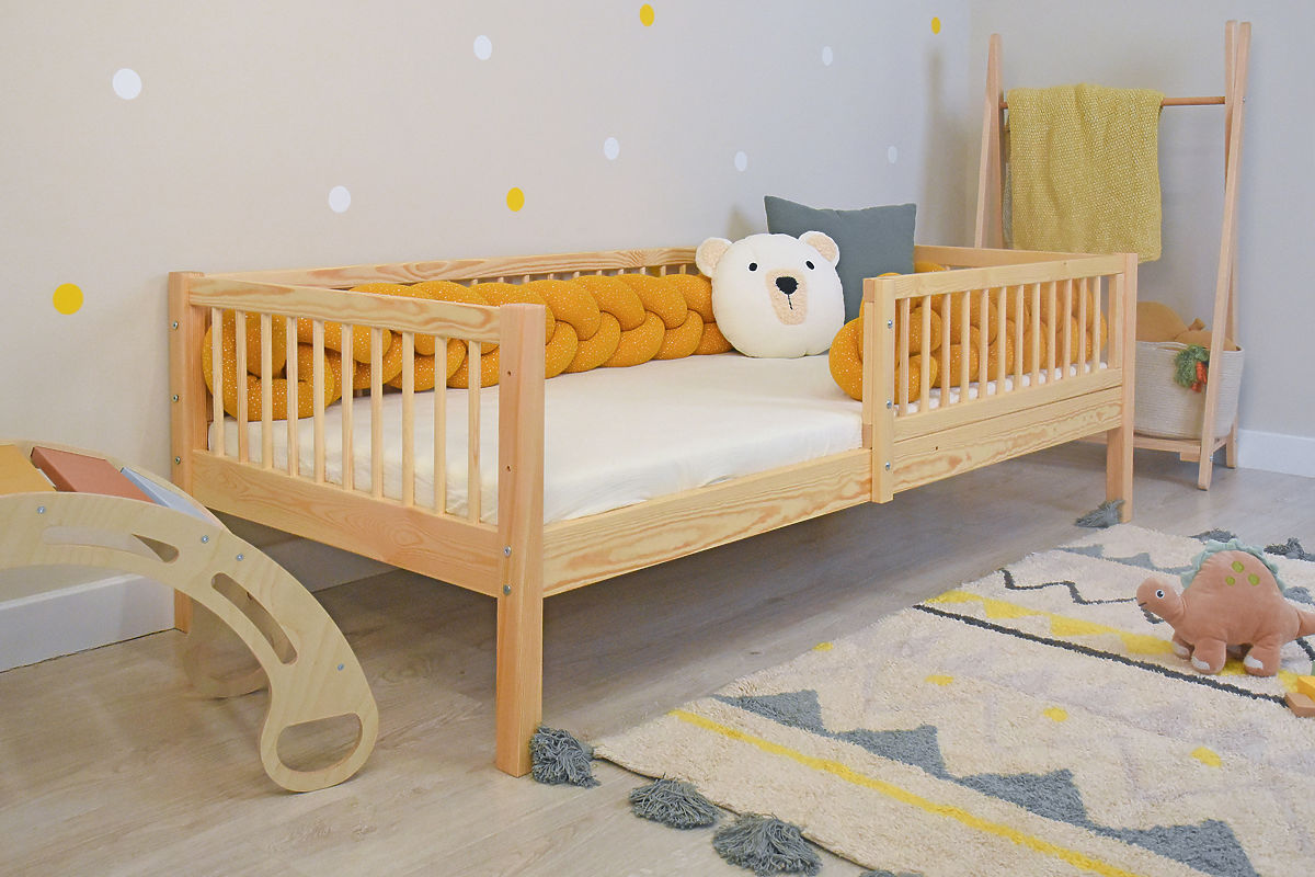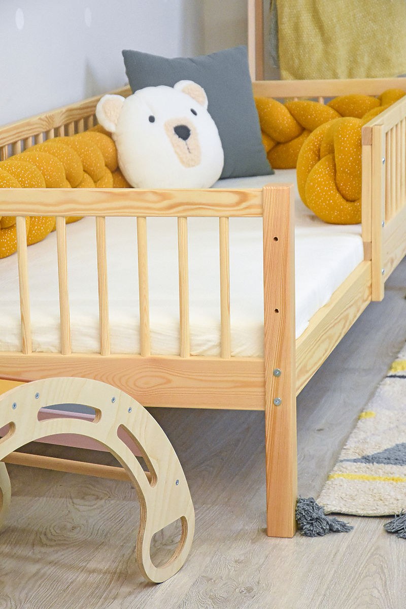 Il letto per bambini di qualità Teddy Plus in colore naturale è la scelta ideale per ogni cameretta. È realizzato in legno massiccio di pino, che garantisce robustezza, stabilità e lunga durata. La superficie naturale senza vernici chimiche è adatta anche per bambini più sensibili. Grazie al design ben studiato, il letto offre non solo un sonno confortevole, ma anche sicurezza e uno spazio di archiviazione pratico sotto il letto.