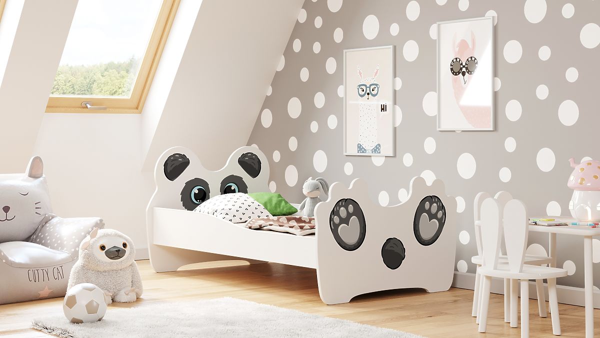 Il letto per bambini con una deliziosa stampa di panda è la soluzione ideale per una piccola amante dei motivi fiabeschi. Il simpatico motivo sulla testiera e sui piedi del letto rende questo mobile non solo un luogo per dormire, ma anche una decorazione eccezionale per la camera dei bambini. I colori delicati e il motivo fiabesco portano un'atmosfera gioiosa all'interno, che favorisce sia il riposo che il gioco creativo.