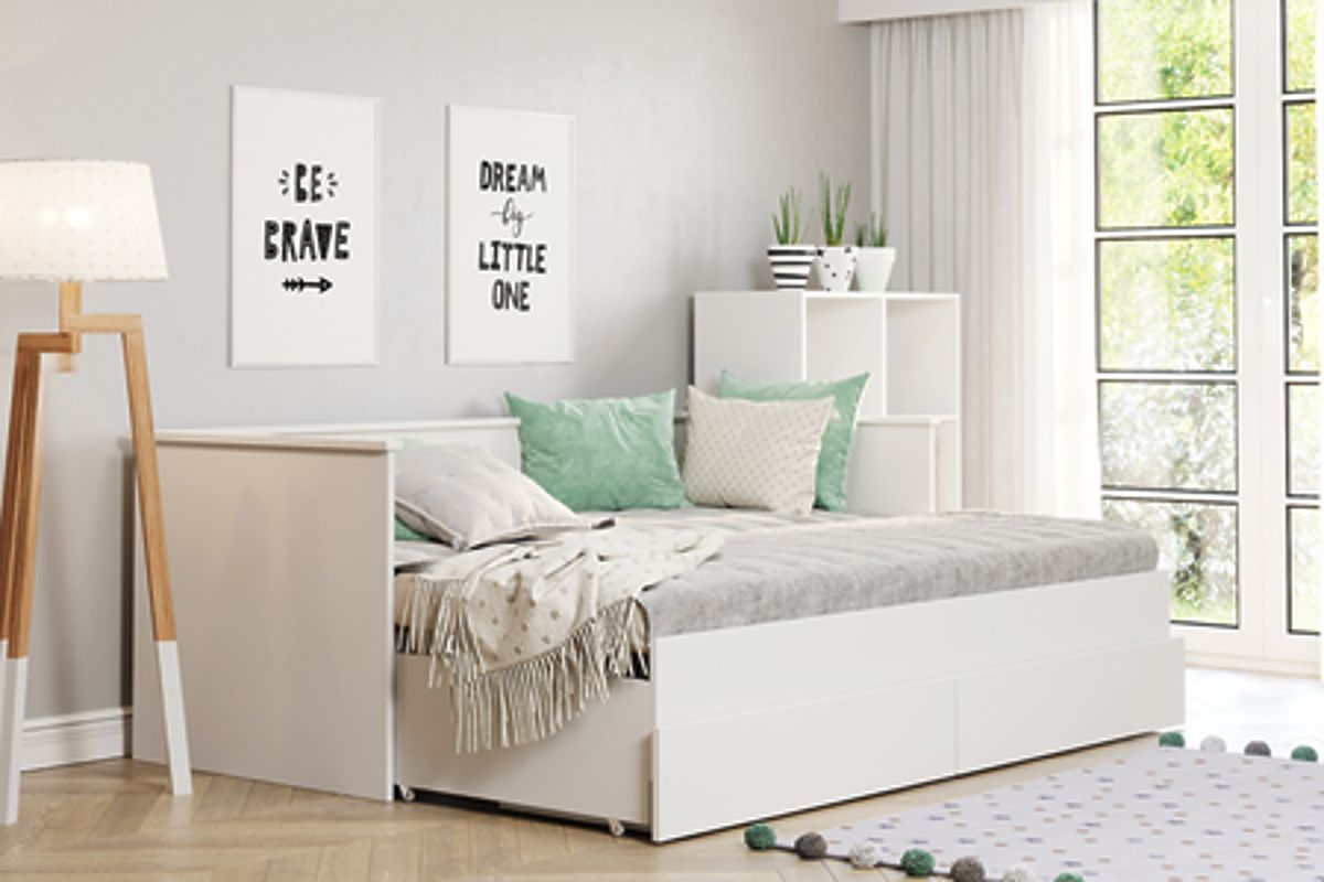 Il letto HELIOS è un moderno letto estraibile per giovani che combina estetica e funzionalità pratiche. Grazie alla possibilità di trasformarsi rapidamente in un letto matrimoniale estraendo la base inferiore, questo mobile è perfetto sia per stanze piccole che spaziose. Il suo design universale in bianco si adatta a qualsiasi stile d'interno, conferendo freschezza ed eleganza.