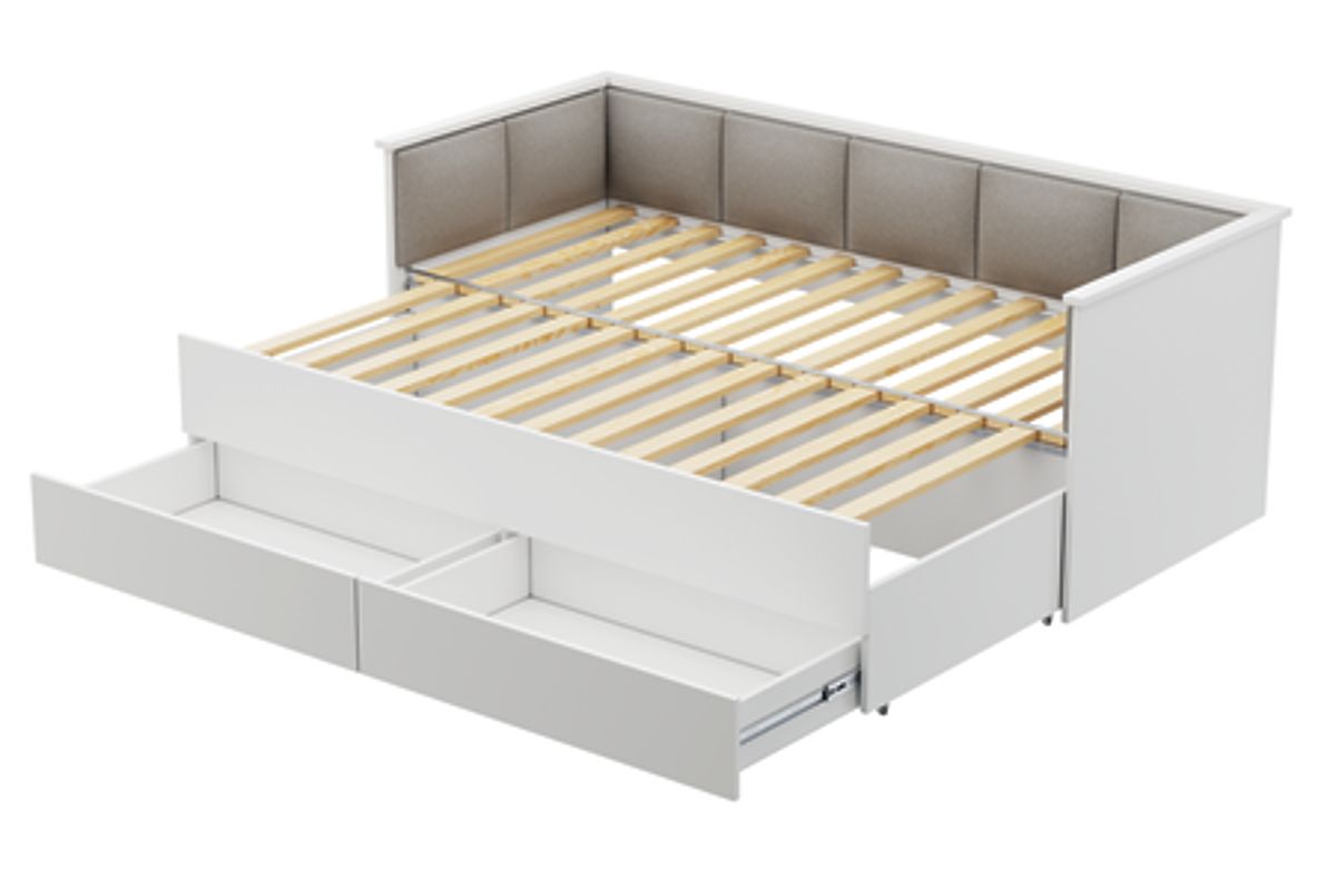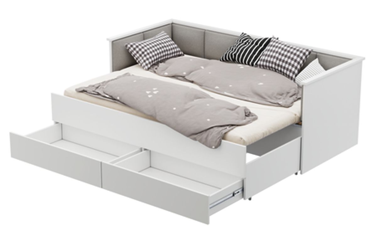 Il letto estraibile per giovani HELIOS disponibile in colore bianco è la perfetta combinazione di eleganza e funzionalità. Grazie alla possibilità di trasformarlo rapidamente in un letto matrimoniale (160x200 cm), è una soluzione ideale sia per stanze piccole che grandi.