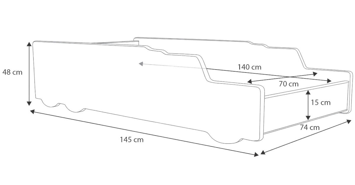 Il letto RIKO non è solo un posto per dormire – è una base creativa per avventure che cresce insieme al bambino. La robusta struttura in pannello di mobili certificato, rinforzata con bordi in PVC, garantisce stabilità anche durante i giochi più sfrenati. L'ergonomia è un altro vantaggio – il sistema FLEX con doghe flessibili sotto il materasso si adatta ai movimenti del bambino, assicurando un sonno sano e una corretta postura. Il design universale permette al letto di armonizzarsi sia con arredi minimalisti che con quelli dai colori fiabeschi, e i dettagli realistici – come le "ruote" di un monster truck, la "scala" di un camion dei pompieri o la "finestra" di un razzo – trasportano il bambino in un mondo di fantasia. Grazie alla capacità di carico fino a 110 kg, il mobile serve per molti anni e i colori dinamici e la stampa laminata resistente (resistente all'abrasione e allo sporco) mantengono un aspetto fresco. È una combinazione di uno spazio sicuro per il riposo, un parco giochi e una decorazione che ravviva la stanza!