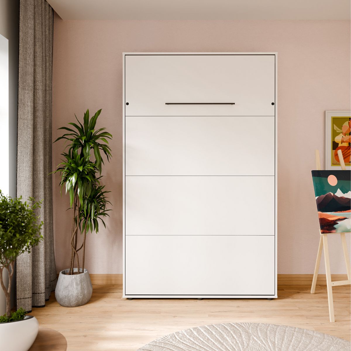 Il letto a scomparsa VERTO 120x200 è un elegante letto verticale nascosto in un armadio, che permette di creare una zona notte accogliente anche in uno spazio ridotto in pochi istanti. Ideale per chi desidera combinare comfort e massimizzazione dello spazio.