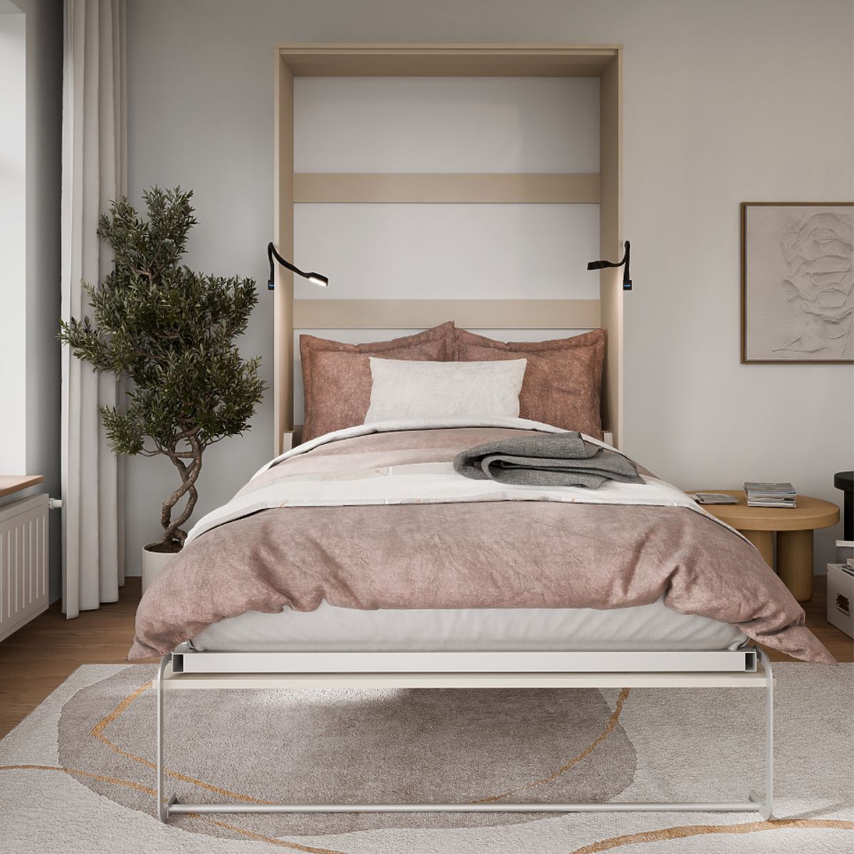 Il letto pieghevole VERTO 120x200 è un elegante letto verticale nascosto in un armadio, che permette di creare in pochi istanti una zona notte accogliente anche in uno spazio ridotto. Ideale per chi desidera combinare comfort e massimizzazione dello spazio.