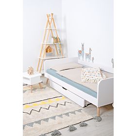 Il letto Nell 2 in 1 del nostro marchio Ourbaby porta nella cameretta dei bambini un connubio di eleganza moderna e praticità. La variante del letto in colore bianco si adatta a qualsiasi interno. Le sue forme leggermente arrotondate conferiscono un design senza tempo e comfort, rendendolo non solo un luogo per dormire, ma anche uno spazio per sognare e avventure. Ci ispiriamo al concetto Montessori e, grazie al profilo basso, promuoviamo l'indipendenza dei bambini, permettendo loro di entrare e uscire dal mondo del sonno autonomamente, supportando la loro autostima e indipendenza.