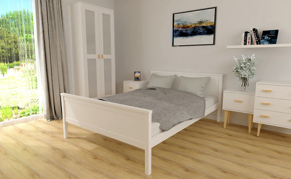 Il letto è realizzato in massello di pino di alta qualità, il che lo rende robusto, resistente e caratterizzato da una lunga durata.