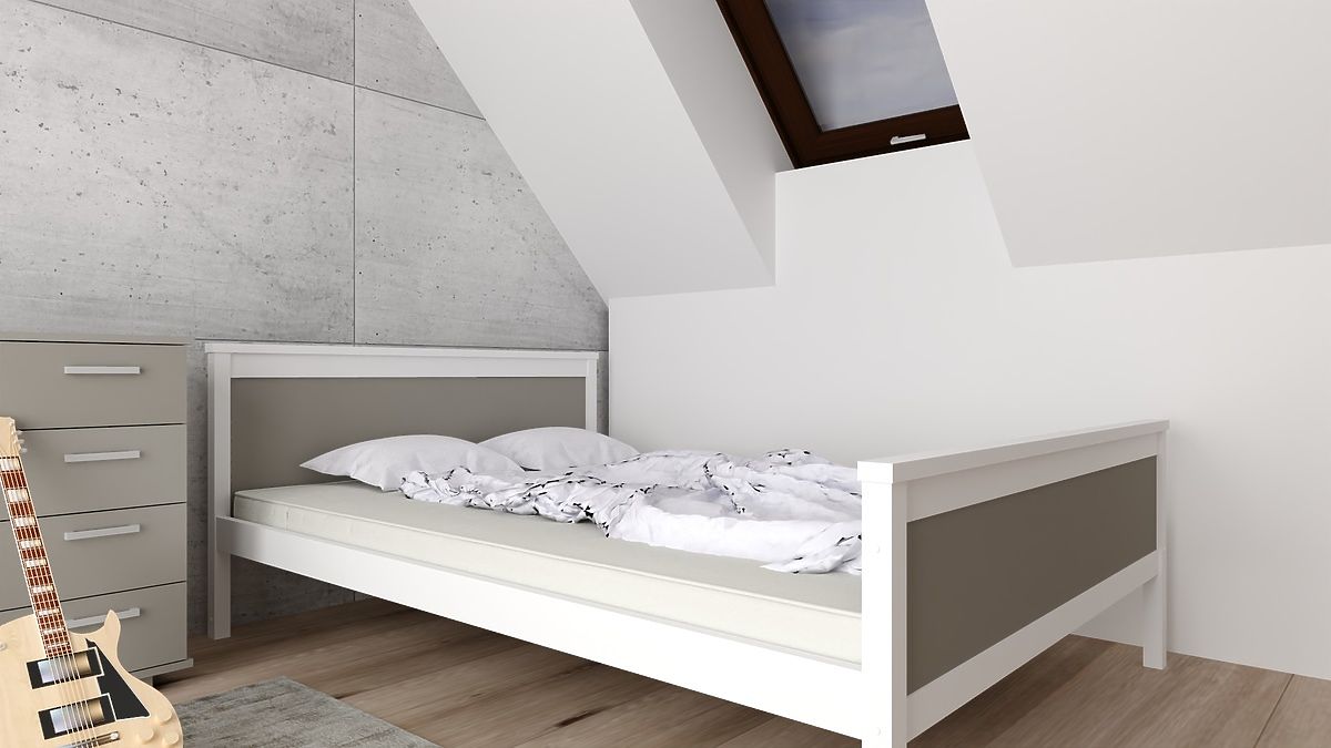 Letto singolo in legno Ikar 200 x 90 cm in versione grigio-bianco, moderno e funzionale. .. altro