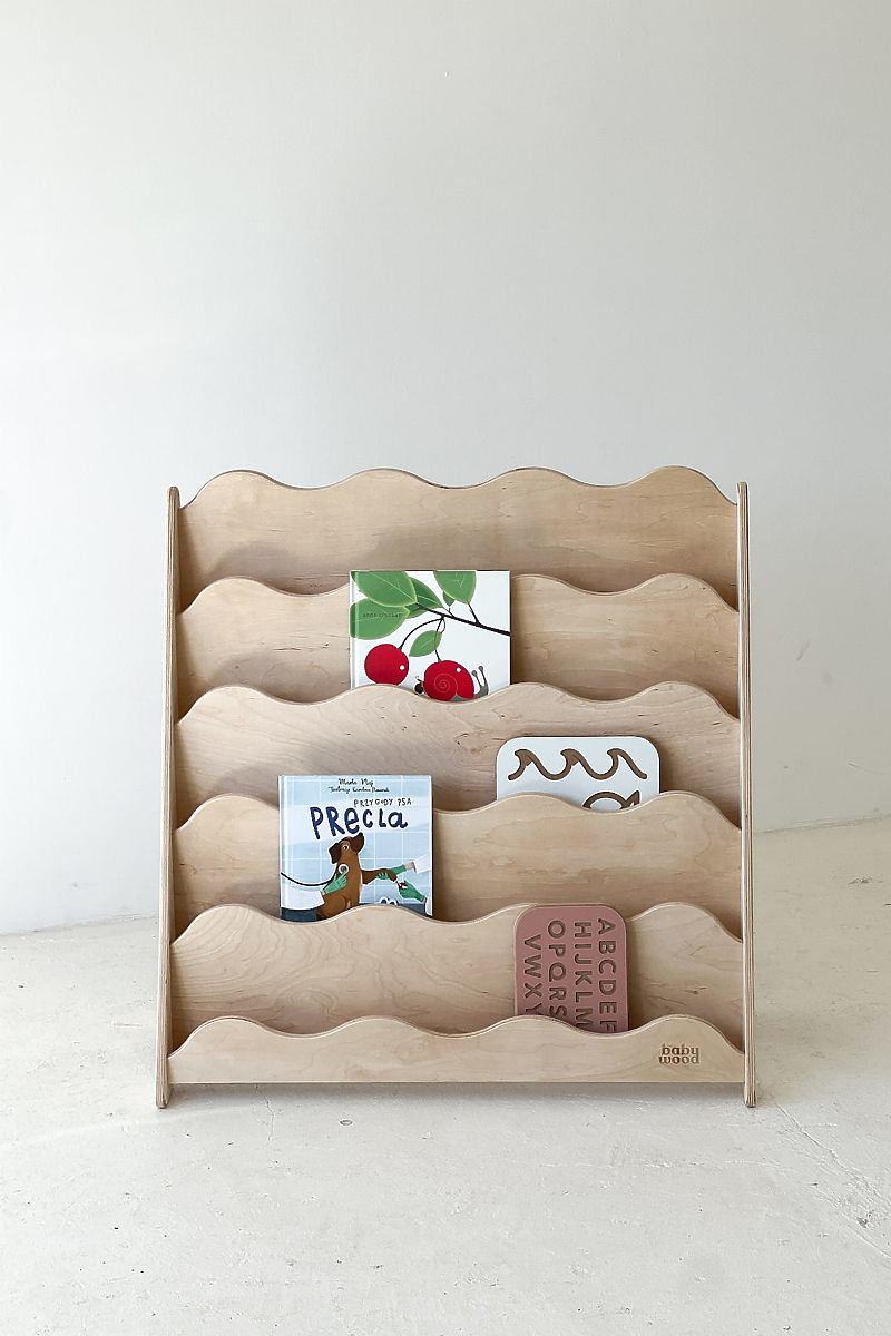 Libreria per bambini con mensole ondulate e materiali sicuri. .. altro