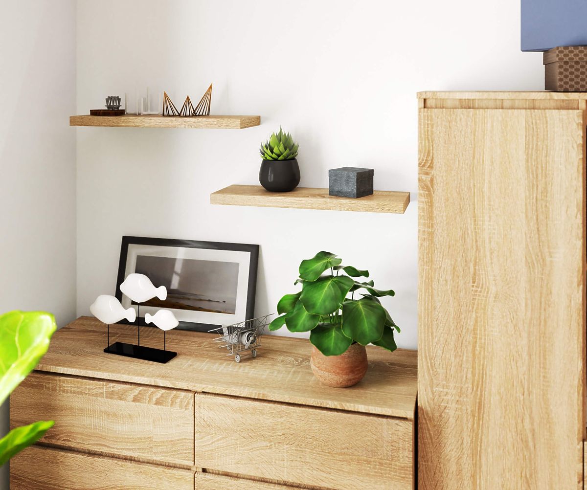 Mensola da mobili 60 cm Realizzata in pannello laminato resistente all'abrasione. I bordi sono rivestiti in melamina. Il pacchetto include supporti a muro invisibili.