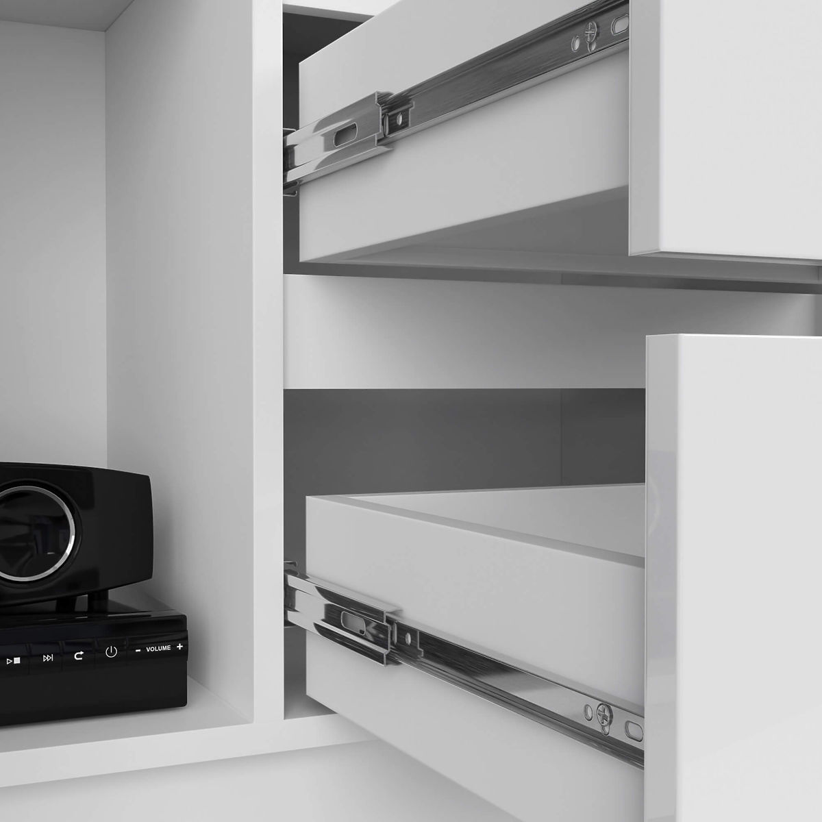 - I cassetti scorrono su guide a sfera in metallo con blocco di estrazione