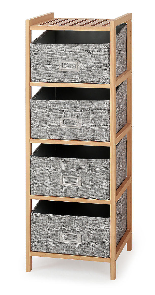 Scaffale in legno massello di quercia con box in tessuto grigi. .. altro