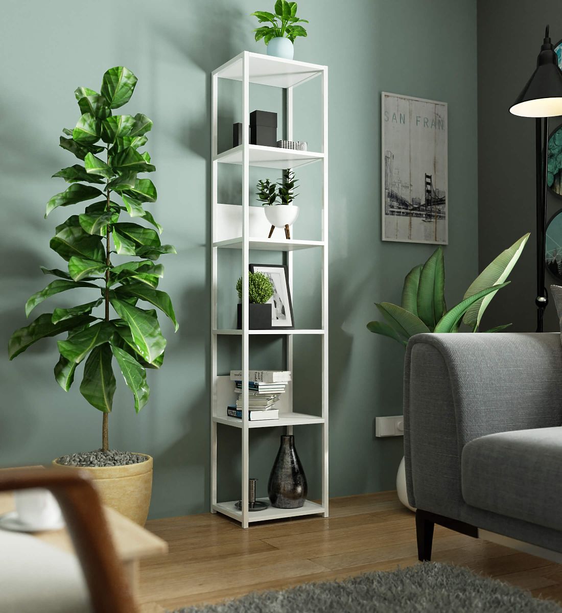 Lo scaffale loft in metallo è un mobile pratico e moderno, adatto sia per il soggiorno che per l'ufficio. Scaffale con telaio in metallo bianco e 6 ripiani in colore bianco. I ripiani dello scaffale sono realizzati in pannello laminato di spessore 16 mm. È un materiale durevole e resistente, caratterizzato da un'elevata resistenza all'abrasione. I bordi sono ulteriormente protetti con bordo ABS, il che garantisce che il mobile mantenga un bell'aspetto anche con un uso quotidiano molto intenso. Lo scaffale è dotato di 6 ripiani su cui è possibile posizionare oggetti da esporre o avere a portata di mano. Nel complesso, appare molto elegante e moderno.