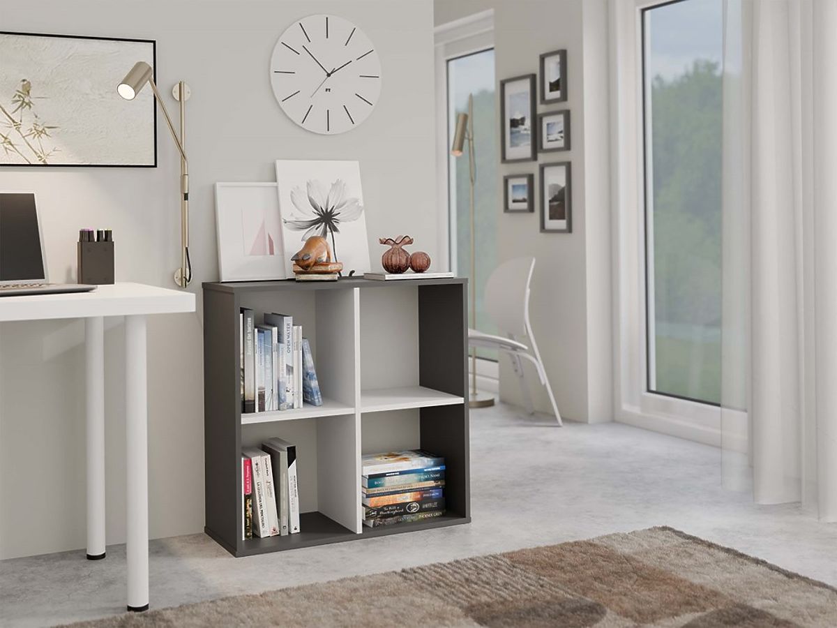 Scaffale a scomparti Malax 2x2 in antracite e bianco per libri e documenti. .. altro