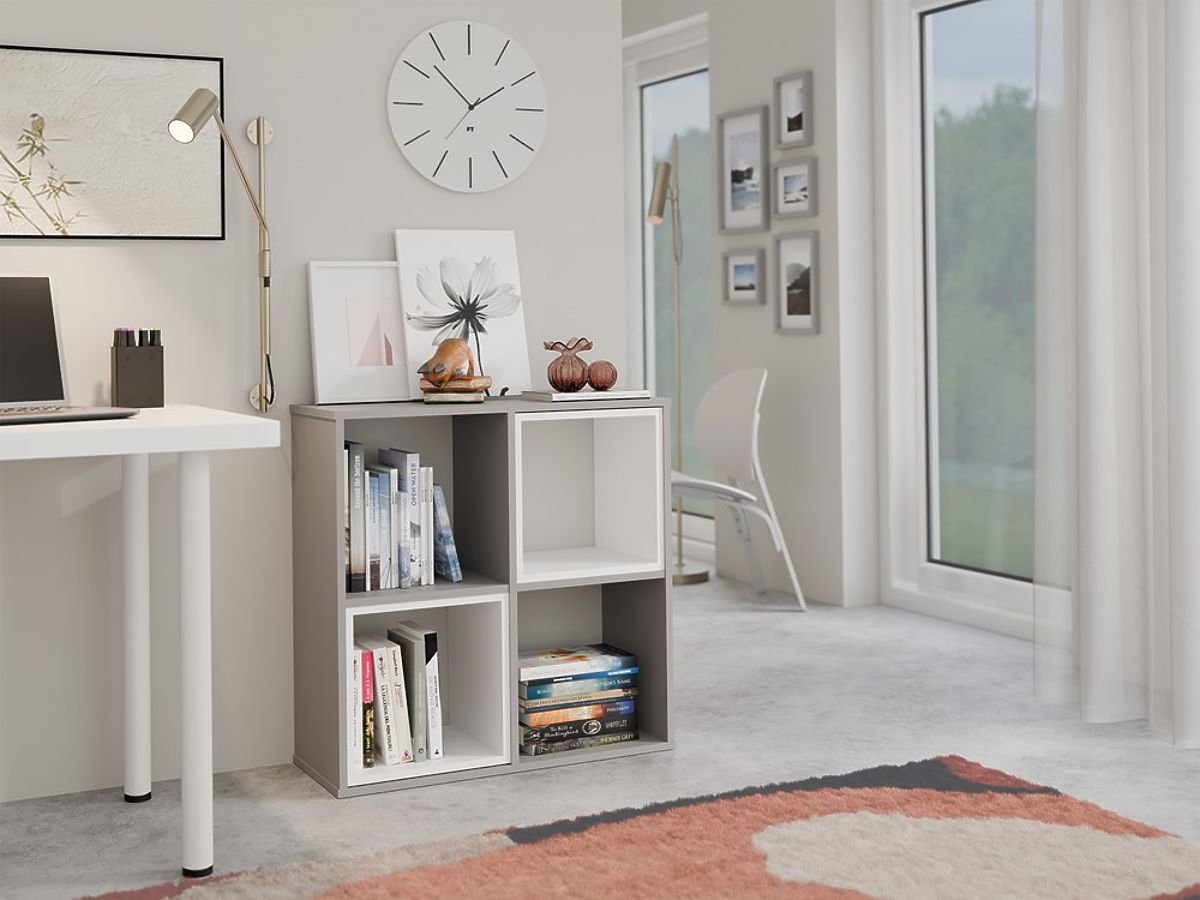 Scaffale a scomparti con 4 ripiani funzionali in tonalità grigio GLINA. .. altro