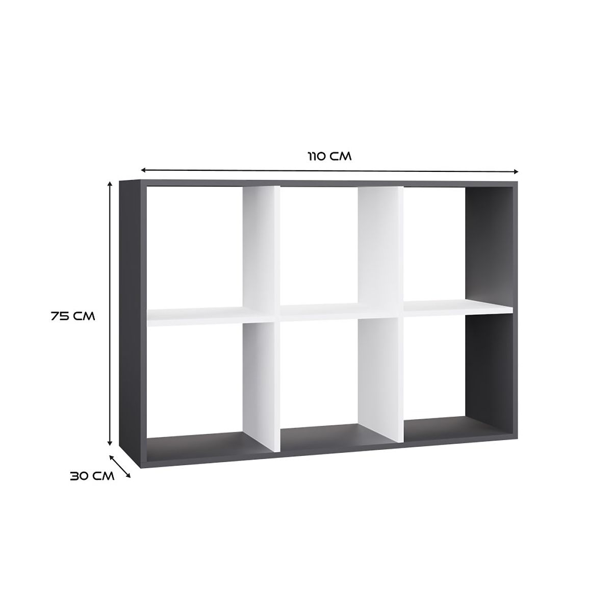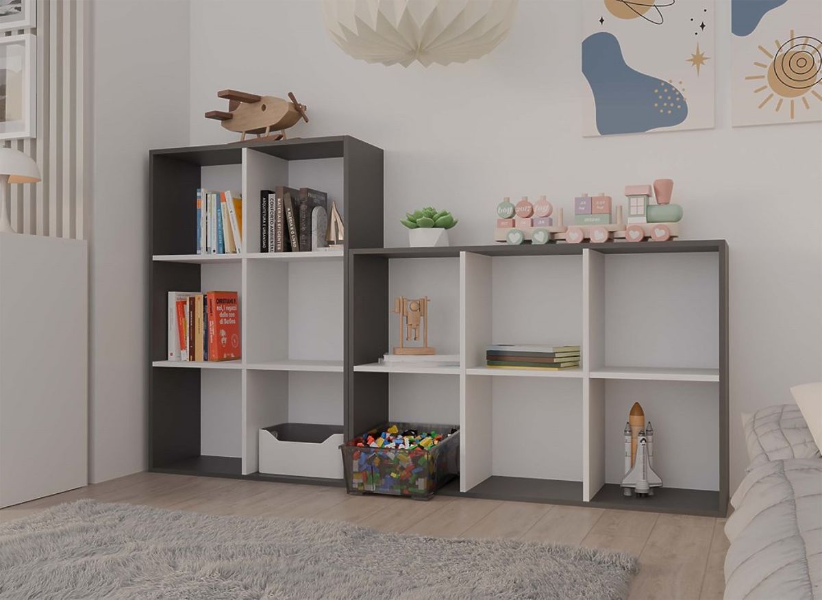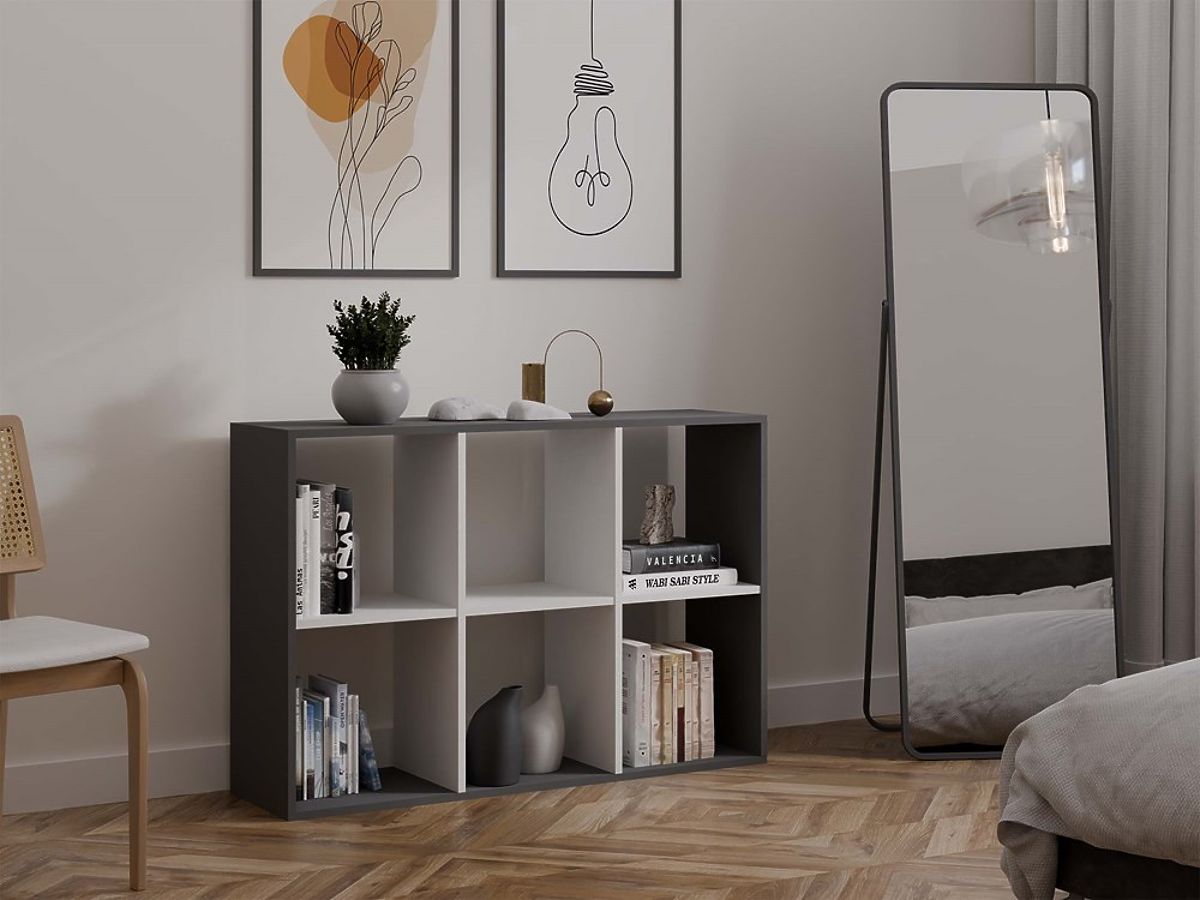 Scaffale moderno Malax 2X3 con 6 scomparti in antracite e bianco. .. altro
