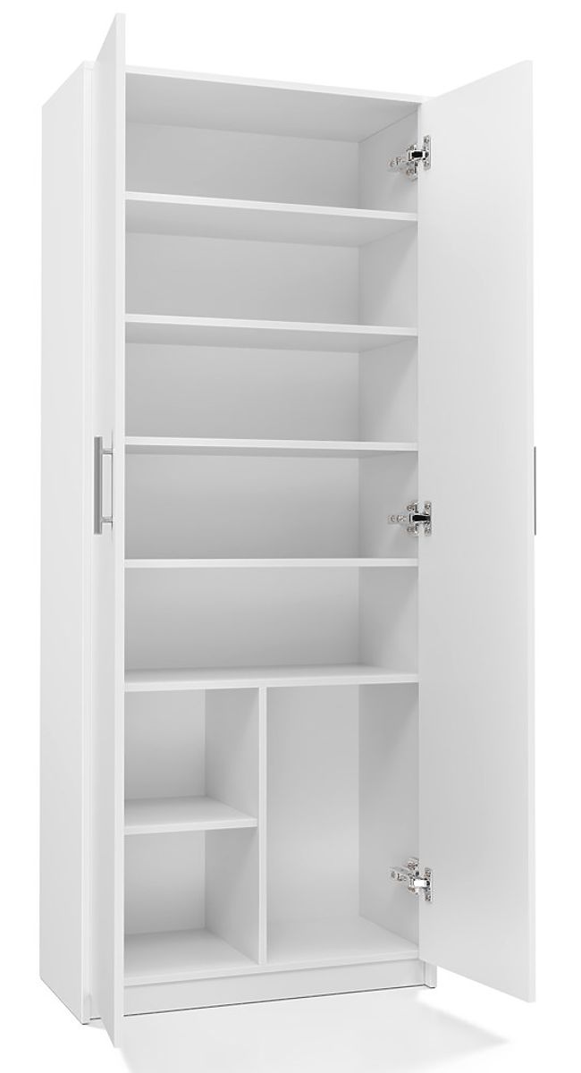 Scaffale chiuso con 8 ripiani e 2 porte in bianco opaco. .. altro