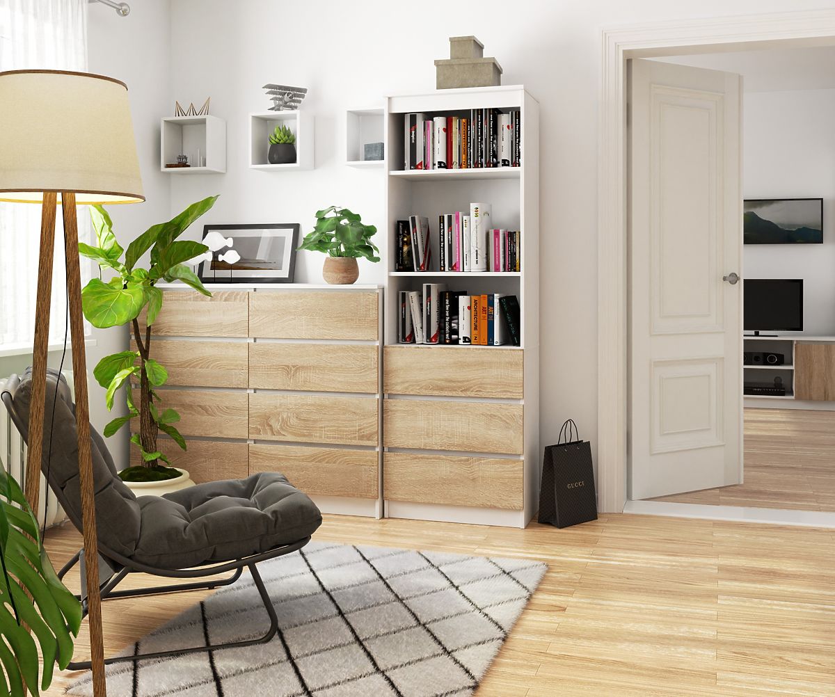 SCAFFALE UFFICIO CLP 60cm 3 CASSETTI 2 RIPIANI Colore Bianco Frontali Sonoma