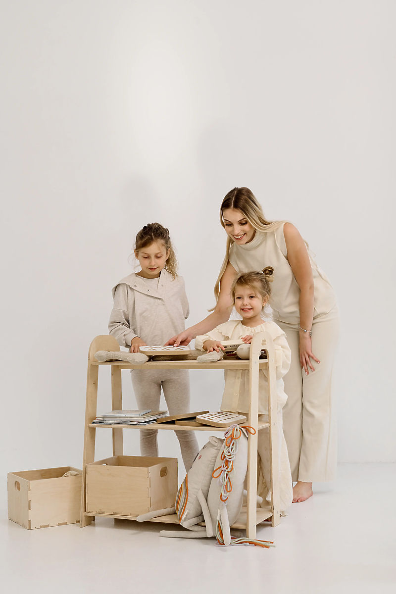 Scaffale per bambini con design semplice e mensole ampie. .. altro