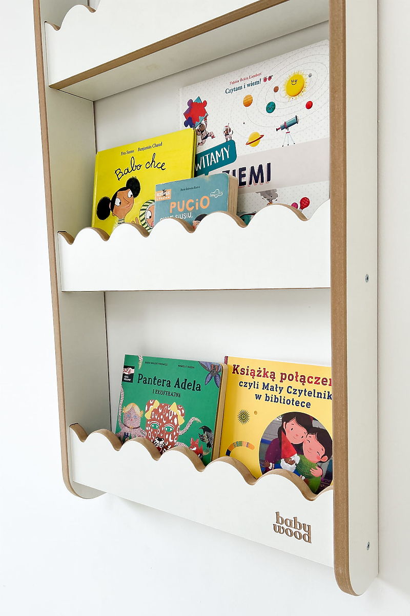 Scaffale WAVE L in colore bianco è una libreria da parete pratica e decorativa che aiuta a mantenere l'ordine nella stanza dei bambini senza occupare spazio sul pavimento. È ideale per libri, piccoli giocattoli, fotografie o altri oggetti preziosi del tuo bambino. Grazie al montaggio a parete, il pavimento rimane libero per il gioco e il movimento, apprezzato sia dai bambini che dai genitori. Design elegante e funzionale della mensola permette di riporre e mostrare facilmente gli oggetti preferiti del bambino. Bordi arrotondati e lavorazione di qualità garantiscono un uso sicuro anche per i bambini piccoli.