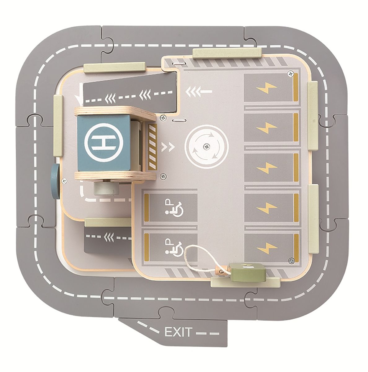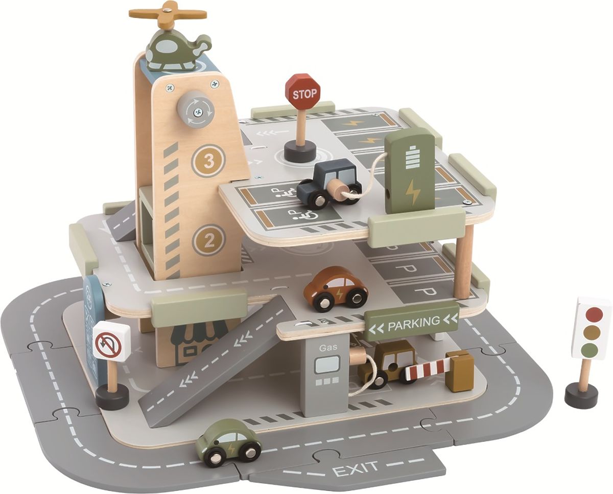 Garage in legno con strada, ascensore ed eliporto per bambini. .. altro