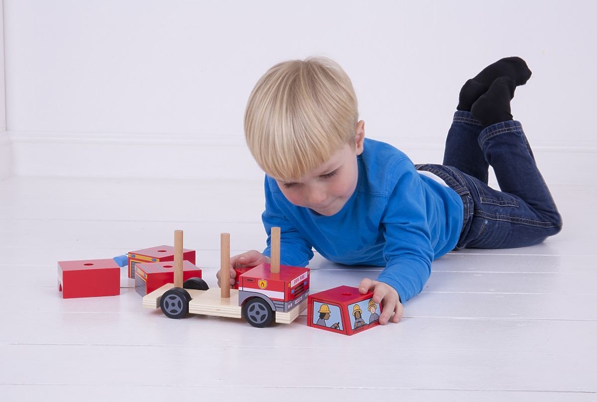 Due giocattoli in uno! Prima che questo veicolo in legno possa muoversi, il tuo bambino deve prima impilare tutti i pezzi nell'ordine corretto e poi può .. altro