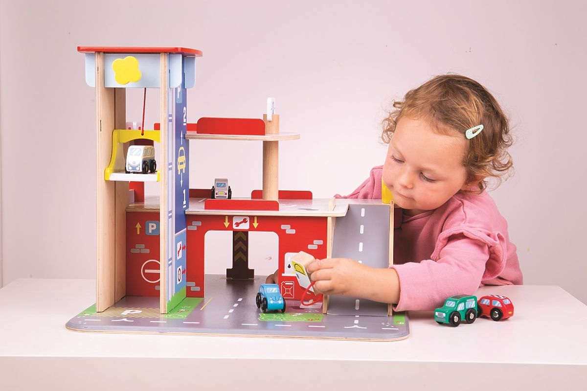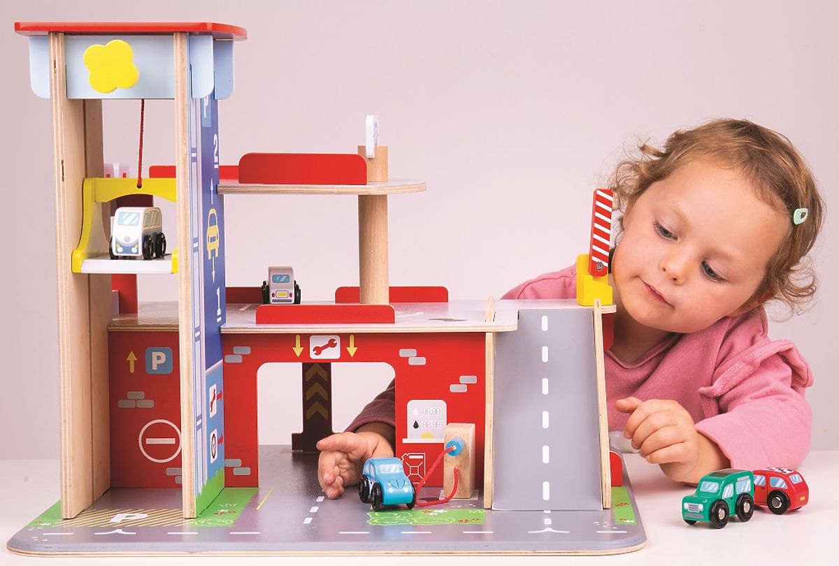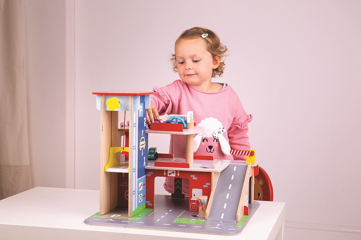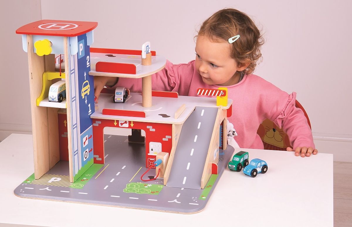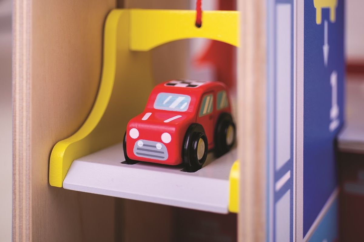 I bambini si divertiranno a giocare su ciascuno dei tre piani del garage con parcheggio. Al piano terra, possono entrare con l'auto nell'ascensore funzionante e poi salire fino al secondo piano per parcheggiare. Al piano terra, i bambini troveranno un'officina, un autolavaggio e una pompa di benzina. Dal primo piano, le auto possono partire utilizzando l'ascensore o la rampa, ma attenzione, le auto devono aspettare che la barriera si alzi! Il punto più alto del garage è l'eliporto. Questo garage ha tutto ciò di cui un piccolo conducente ha bisogno per spostarsi dal punto A al punto B. Supporta la creatività e l'immaginazione. Sviluppa la coordinazione occhio-mano, la motricità fine e l'abilità manuale. Può essere integrato con le macchinine Bigjigs Toys e Bigjigs Rail. Realizzato con materiali di qualità provenienti da fonti responsabili. Caratteristiche principali: 3 piani con parcheggio ed eliporto, ascensore funzionante, officina, autolavaggio e pompa di benzina al piano terra.