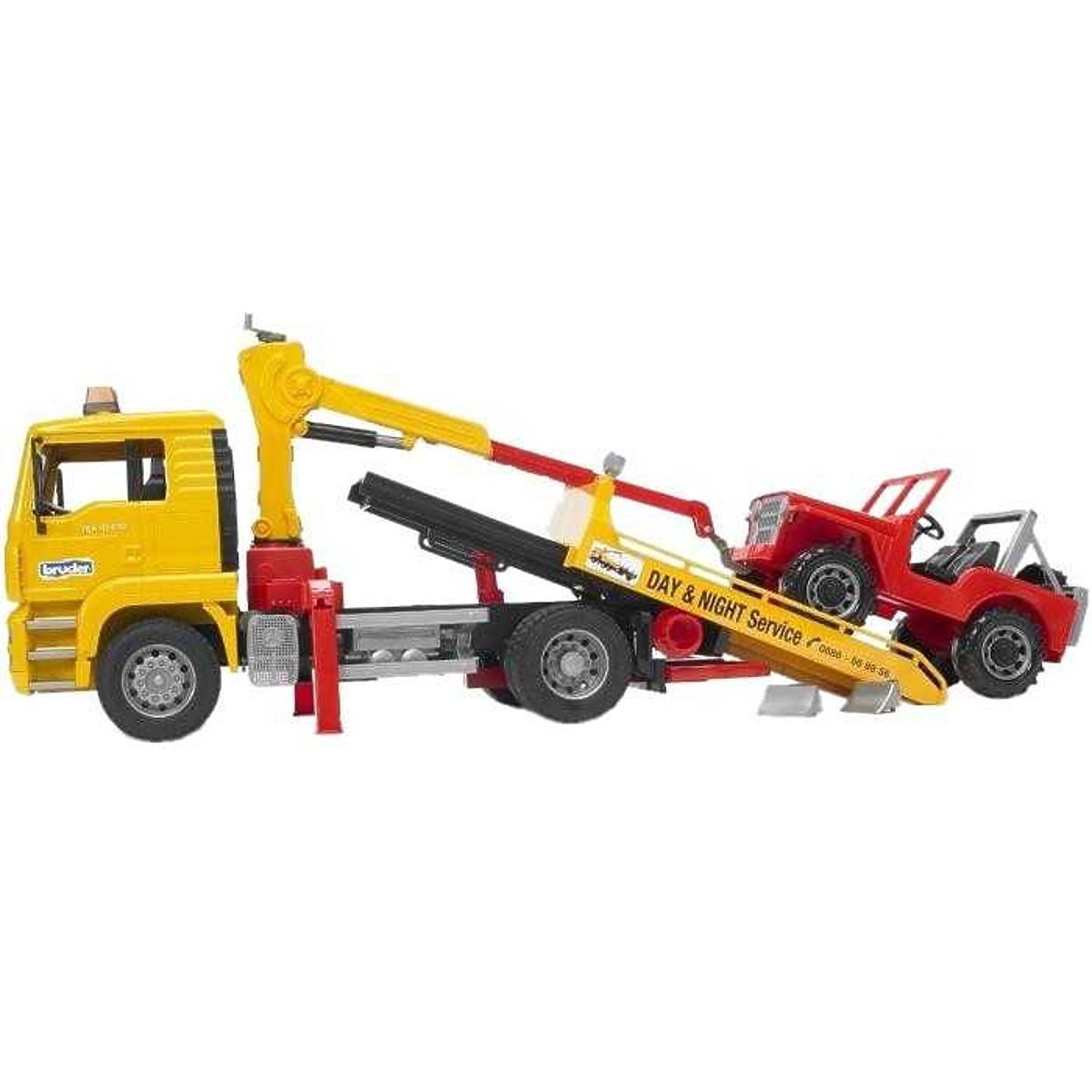 Bruder Camion MAN con carro attrezzi + Jeep. Il servizio di carro attrezzi + Jeep è un veicolo di recupero che include una jeep. Il camion MAN TGA ha una cabina .. altro