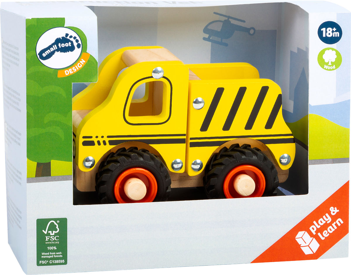 Equipaggiato per ogni cantiere. Questo veicolo da costruzione realizzato in legno 100% certificato FSC® trasporta i materiali più importanti al prossimo cantiere. Grazie alle gomme gommate con un profilo adatto al terreno accidentato, circola in sicurezza e silenziosamente nella stanza dei bambini. Veicolo compatto per la gioia di ogni bambino. Principali caratteristiche: legno 100% certificato FSC®, gomme gommate. Il marchio e certificato FSC® (Forest Stewardship Council) garantisce che il legno con cui è stato realizzato il prodotto non è stato abbattuto illegalmente e proviene da foreste gestite in modo sostenibile o vicino alla natura, dove vengono rispettati rigorosi requisiti ambientali e sociali. Il marchio FSC® sul prodotto significa che con il tuo acquisto aiuti a proteggere le foreste e sostieni una gestione sostenibile, responsabile o vicina alla natura, grazie alla quale le nostre foreste sono più stabili, più sane, hanno una composizione naturale delle specie e resistono meglio agli effetti negativi dei cambiamenti climatici.