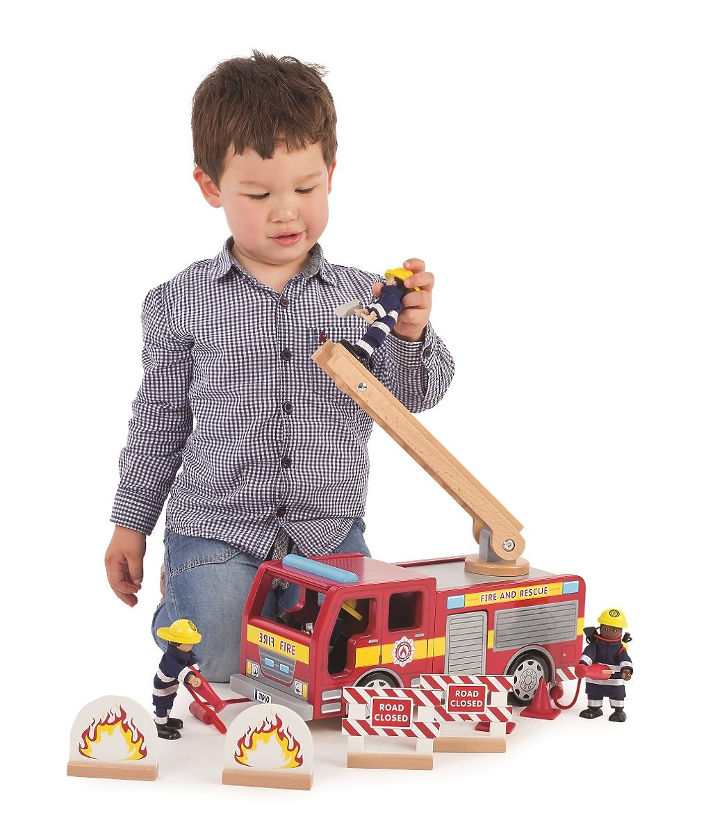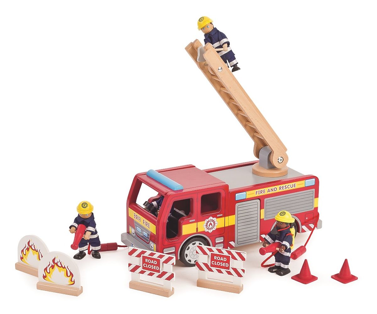 Camion dei pompieri in legno con scala estensibile e porte apribili. .. altro