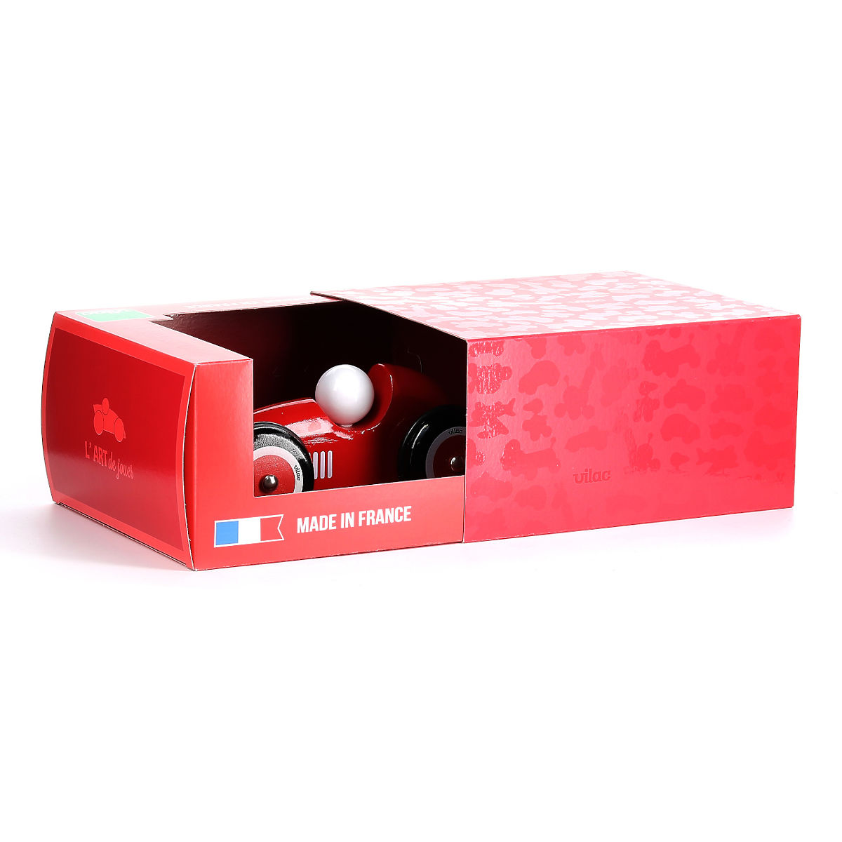 Grande macchinina in legno dalle forme e colori unici, che suscita entusiasmo e voglia di correre in ogni pilota, piccolo o grande. Con il suo design, attira facilmente i collezionisti adulti e, grazie alle sue dimensioni, diventa un complemento d'arredo che non passa inosservato. Le parti dell'auto sono in legno massiccio laccato con il tradizionale processo di immersione nei bagni di colore. Le robuste ruote sono caratterizzate da un movimento fluido e sono dotate di anelli in gomma, che rendono il giocattolo silenzioso durante il movimento. Prodotto in Francia, viene fornito in una confezione premium. Caratteristiche principali: design unico e lavorazione silenziosa e raffinata, prodotto in Francia