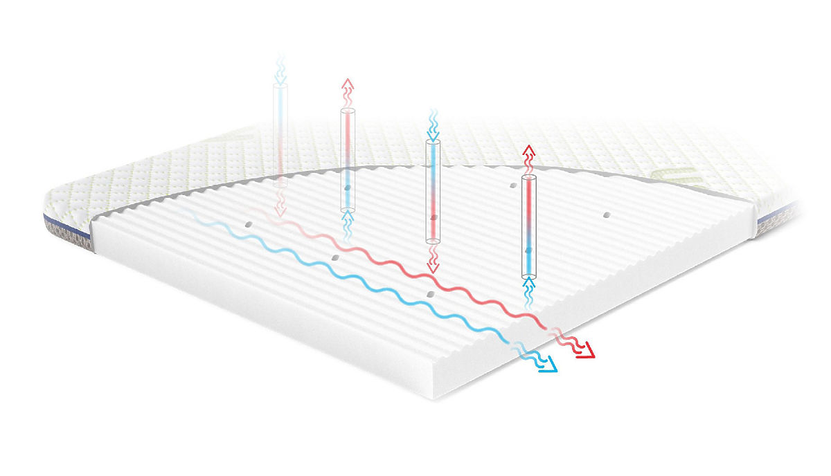 La rete di rivestimento e i canali verticali e orizzontali sono completamente integrati - grazie a ciò si crea una rete estesa e il materasso respira.