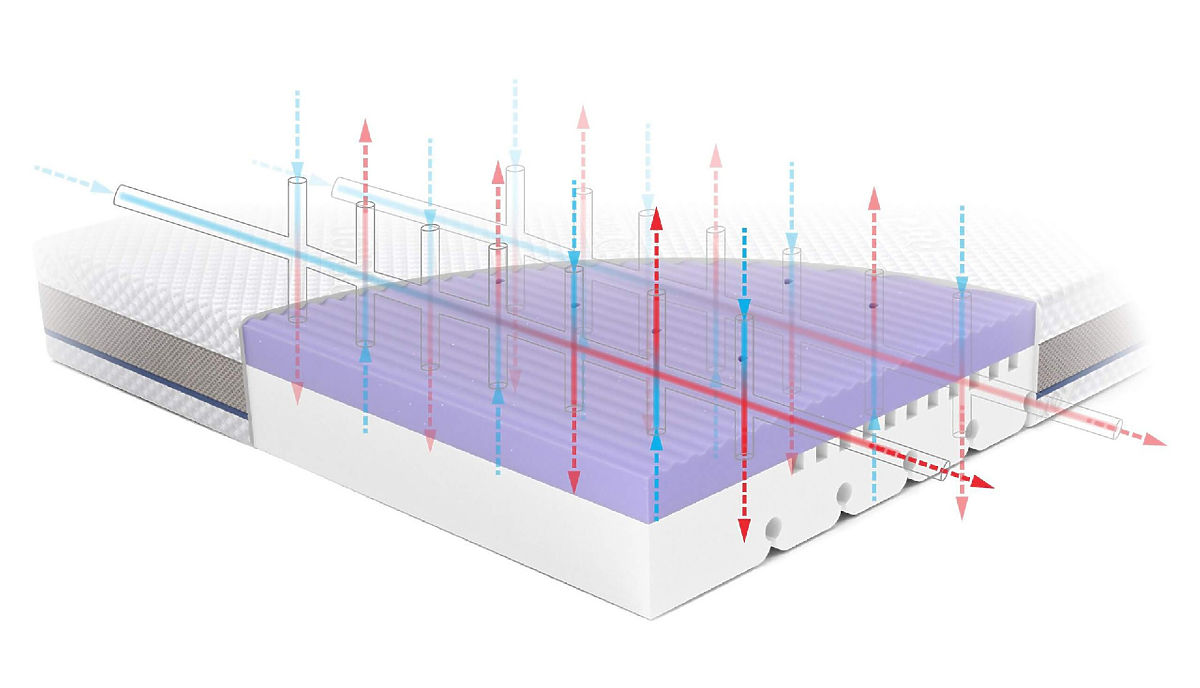 La rete di rivestimento e i canali verticali e orizzontali sono completamente integrati - grazie a ciò si crea una rete estesa e il materasso respira.