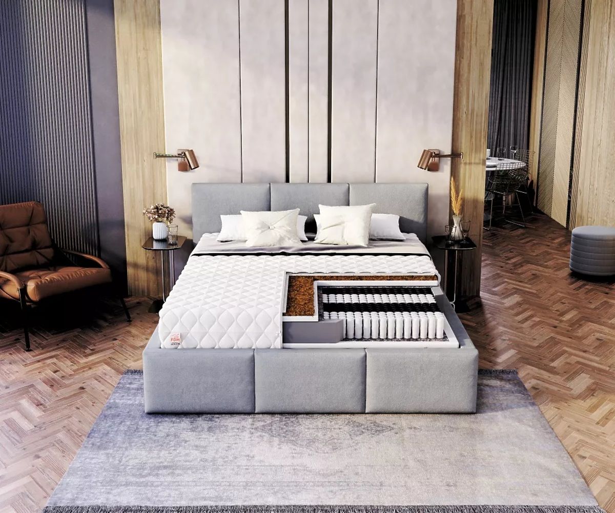 Il nucleo del materasso è costituito da molle insacchettate , ciascuna delle quali è inserita in un'apposita tasca. Le molle non sono interconnesse e funzionano indipendentemente sotto carico. Con la sua forma si adatta alla figura della persona che dorme e fornisce così un ottimo sostegno alla colonna vertebrale . Il materasso è suddiviso in 7 zone di sostegno , dove ciascuna zona rappresenta un sostegno adeguato per una determinata parte del corpo. FAMILY è un modello bifacciale grazie ai diversi gradi di durezza su ciascun lato del materasso, quindi può essere facilmente adattato alle vostre preferenze personali. Un lato del materasso è costituito da schiuma pur e un inserto in cocco, mentre sull'altro lato è presente uno strato di schiuma pur . La schiuma flessibile è resistente alla deformazione e impedisce lo sviluppo di acari e altri microrganismi . Il cocco naturale è traspirante e ha proprietà antiallergiche. Tra le molle e la schiuma è stato inserito un materiale separatore . Questo è un feltro naturale che può prolungare significativamente la vita del materasso e rafforzarne la struttura. I materiali utilizzati sono sicuri, durevoli e resistenti all'usura. Di conseguenza, il materasso FAMILY durerà per molti anni.