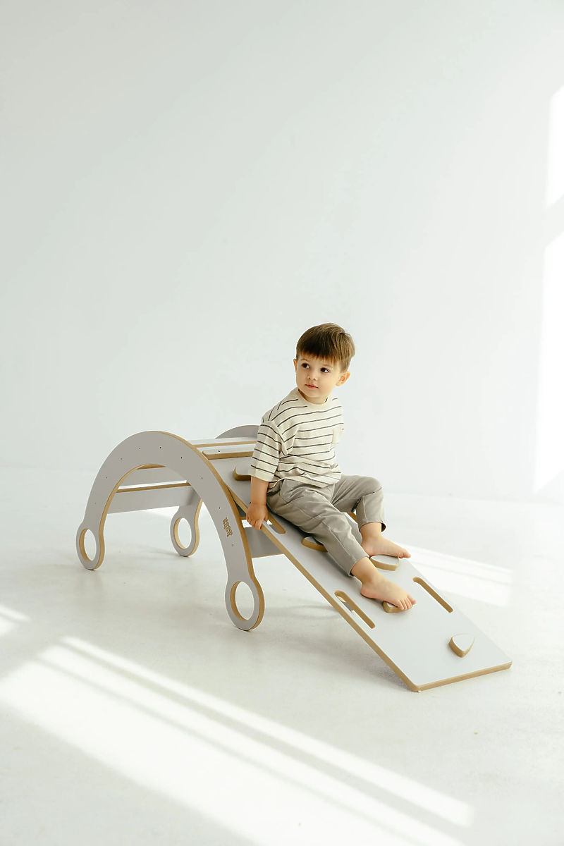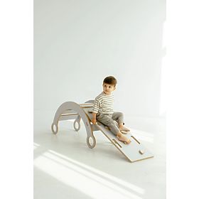 Banaby.it » Montessori / Dondoli Montessori / Altalena in legno Montessori con scivolo/parete da arrampicata M - bianca