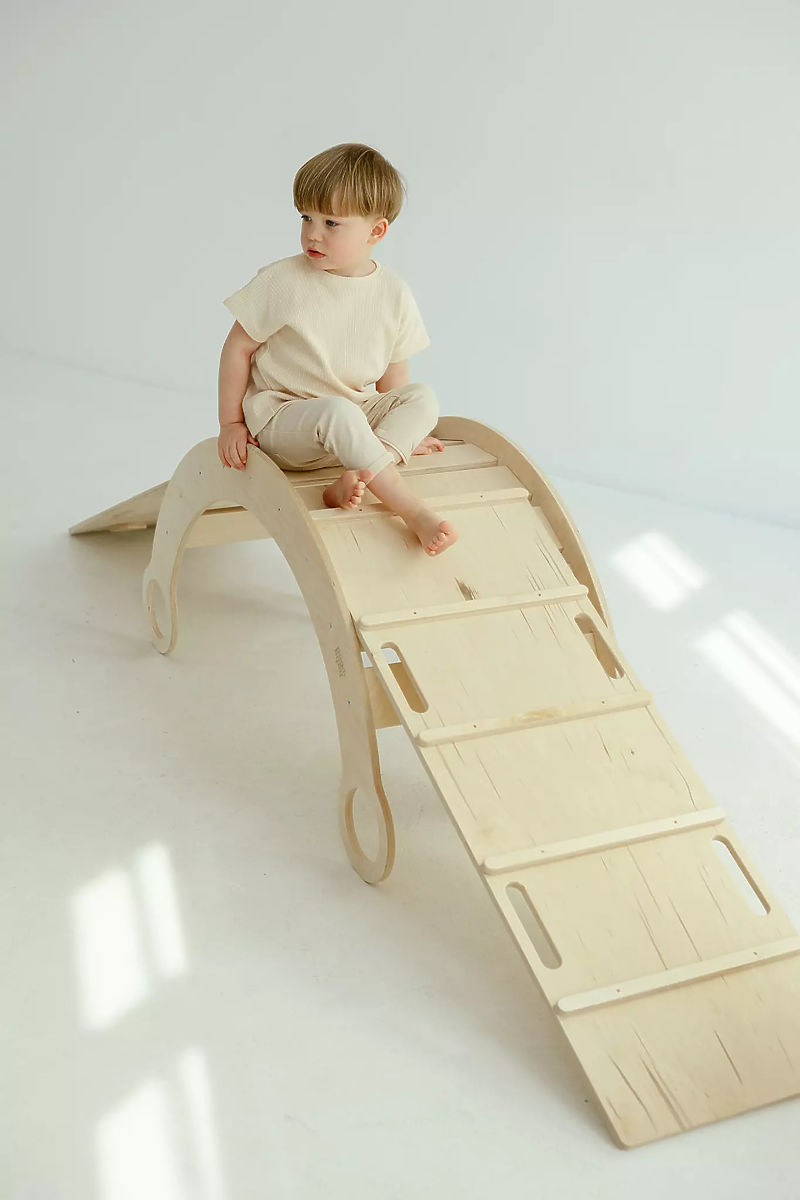 Set da arrampicata Montessori in legno con altalena e scivolo. .. altro