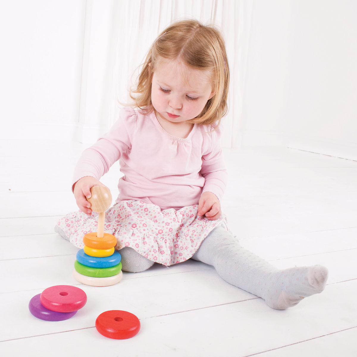 Scopri tutto sulle dimensioni, dalla più grande alla più piccola, con questa colorata figura in legno. La confezione comprende tutto come mostrato in foto. L'asta è collegata alla base solo con un cordino per una maggiore sicurezza dei bambini nel caso cadano sul giocattolo. Aiuta a sviluppare destrezza e coordinazione. Realizzato con materiali di alta qualità e di provenienza responsabile. Corrisponde agli attuali standard di sicurezza europei. Si compone di 9 pezzi. Caratteristiche principali: 9 colori dell'arcobaleno sviluppano abilità e coordinazione