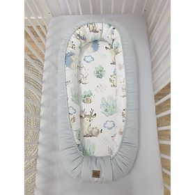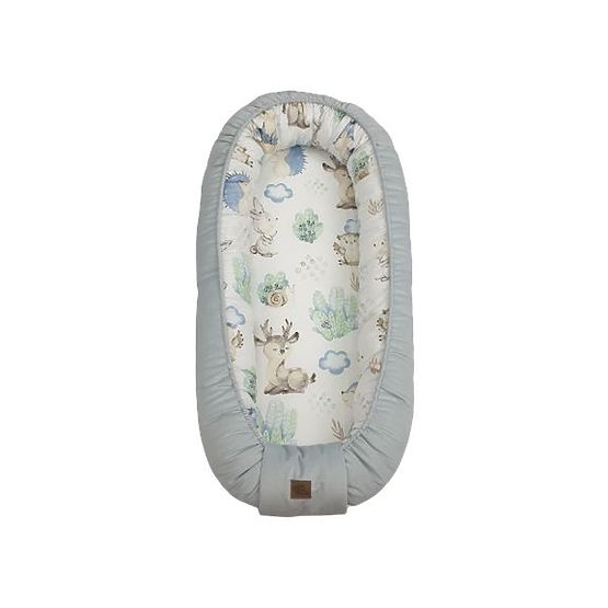 Nido per un bambino con il motivo di un riccio e dei suoi amici. Il nido fornirà al bambino uno spazio accogliente e sicuro simile a quello che aveva nella pancia della madre. Protegge il bambino dalla caduta dal divano o dal letto .