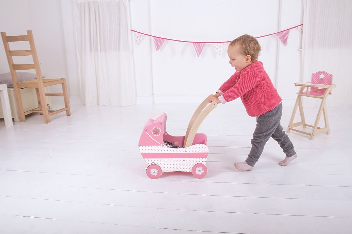 Banaby.it » Giocattoli / Passeggini per bambole e accessori / Bigjigs Toys Carrozzina in legno per bambole