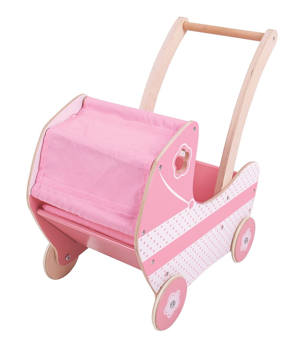 Carrozzina in legno per bambole in un bellissimo colore rosa con tettuccio in tessuto e dettagli finemente intagliati. La carrozzina include un semplice rivestimento interno per garantire viaggi confortevoli alle bambole. Le ruote robuste sono dotate di una striscia in gomma per un movimento silenzioso anche su pavimenti duri. Il manico facilmente afferrabile e la struttura stabile garantiscono divertimento durante il gioco. Aiuta a ispirare il gioco di ruolo creativo e sviluppa le abilità sociali. Richiede montaggio. Realizzato con materiali di alta qualità e provenienza responsabile. Soddisfa le attuali norme di sicurezza europee. Può essere utilizzato anche come decorazione. Caratteristiche principali: sviluppa creatività e abilità sociali, manico facilmente afferrabile e struttura stabile, include un semplice rivestimento interno, ruote robuste gommate.